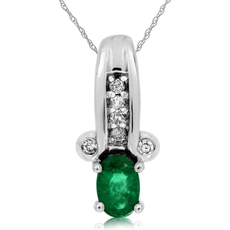 Embrace the fusion of tradition and trend in this exquisite 14K White Gold Emerald & Diamond Pendant by Royal. Elevate your style with the timeless elegance of emerald and diamond, meticulously crafted to capture attention and admiration. The 0.10-carat diamond dazzles in its round shape, complementing the captivating 0.45-carat oval emerald centerpiece. Set in lustrous 14K white gold, this pendant epitomizes luxury and sophistication, perfect for adding a touch of glamour to any ensemble. Whether for a special occasion or everyday wear, this pendant is a stunning reflection of refined taste and enduring beauty.