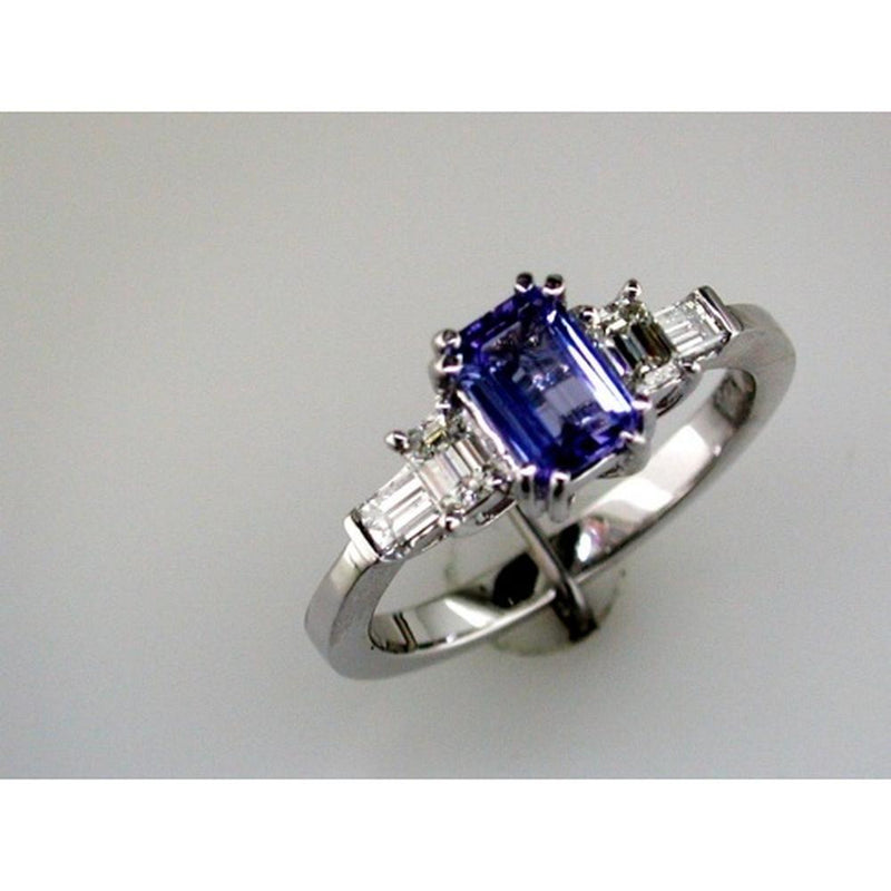 Luxuriate in the luster of luminescence with this exquisite Tanzanite and Diamond Ring, a captivating masterpiece that will transport you to an era of timeless elegance and sophistication. The centerpiece of this ring is a stunning 1.05-carat Tanzanite, masterfully cut into an emerald shape, exuding a deep, hypnotic blue hue that reflects the mysteries of a twilight sky. Flanked by the brilliance of baguette-cut and princess-cut diamonds, totaling 0.52 carats, the ring dazzles with an intricate interplay of light, creating a symphony of sparkle that enchants the eye from every angle.