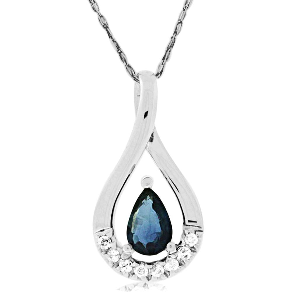 Royal 14K White Gold Sapphire & Diamond Pendant - Elegant Pear Shape Jewelry