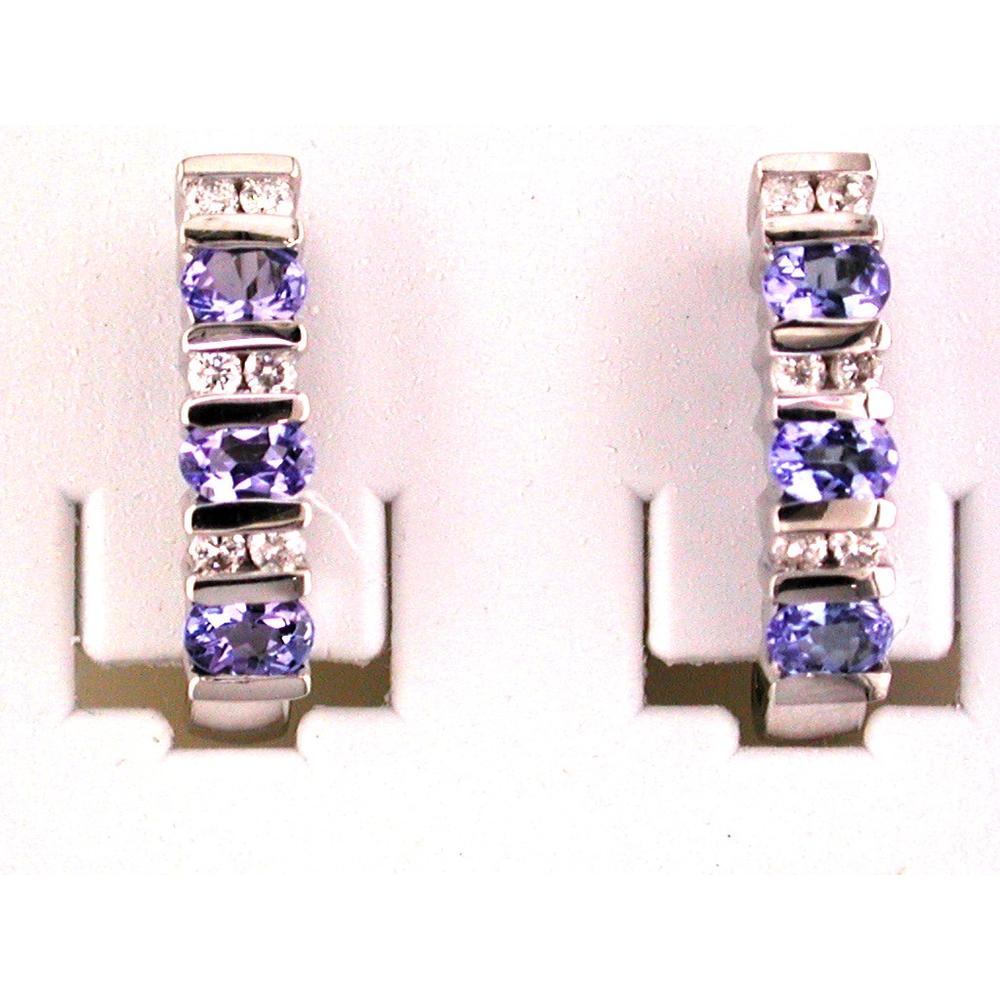 Ignite your senses with the allure of elegance embodied in these 14K White Gold Tanzanite & Diamond Earrings. Crafted with meticulous attention to detail, these earrings boast a captivating trio of stones. At the center, a resplendent 1.12 carat Tanzanite, with its mesmerizing violet-blue hue, commands attention, flanked by two sparkling round diamonds totaling 0.28 carats, enhancing the brilliance of the ensemble. Set in lustrous 14K white gold, the design exudes sophistication and timeless charm. Whether worn for a special occasion or to elevate everyday attire, these earrings are a testament to refined taste and exquisite craftsmanship.