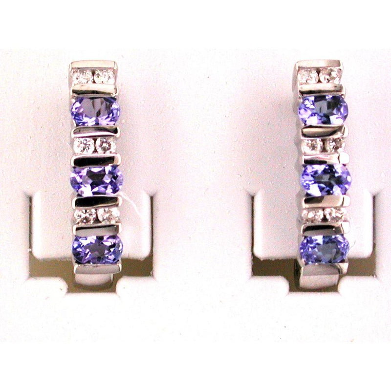 Royal 14K White Gold Tanzanite and Diamond Three Stone Earrings - 1.12 Carat Tanzanite, 0.28 Carat Diamonds