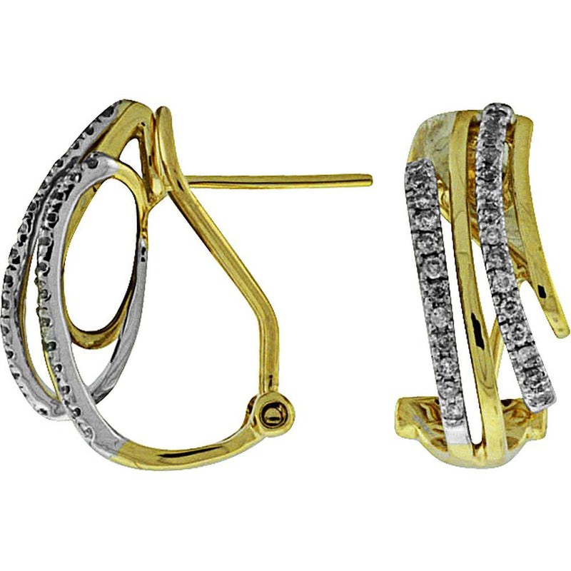 Appreciate the appeal of ageless artistry in these exquisite diamond earrings, where elegance meets innovation. Meticulously crafted in 14K yellow gold, these earrings are a modern reimagining of a timeless classic. The design features a captivating interplay of sleek gold curves, gracefully intertwining with two rows of sparkling round diamonds that total 0.28 carats. Each diamond, set in a delicate pavé setting, catches the light with every turn, creating a dazzling effect that enhances the natural beauty of the stones.