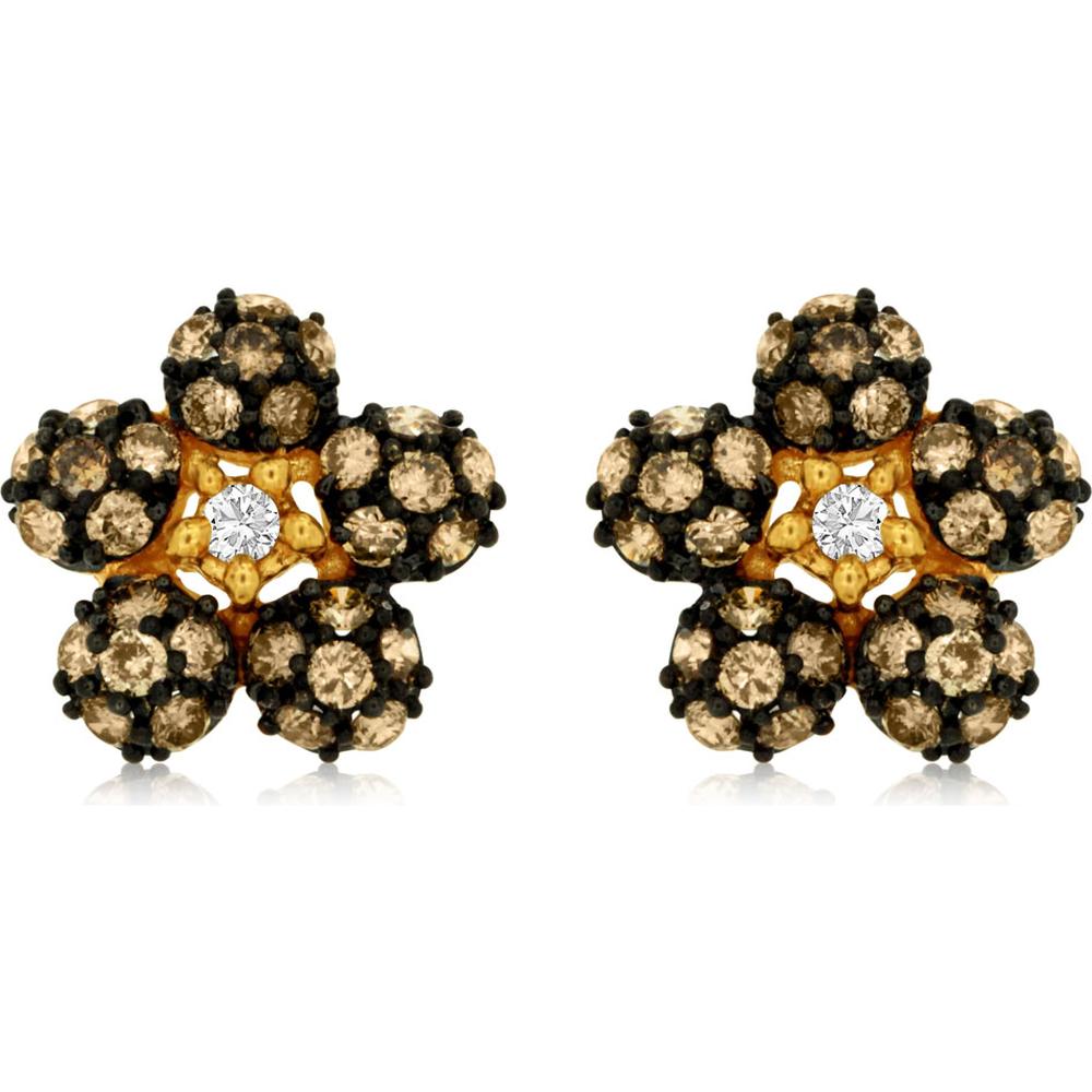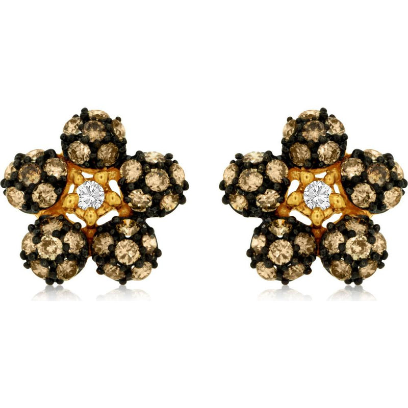 Royal 14K Yellow Gold Floral Earrings with Mocha Diamond