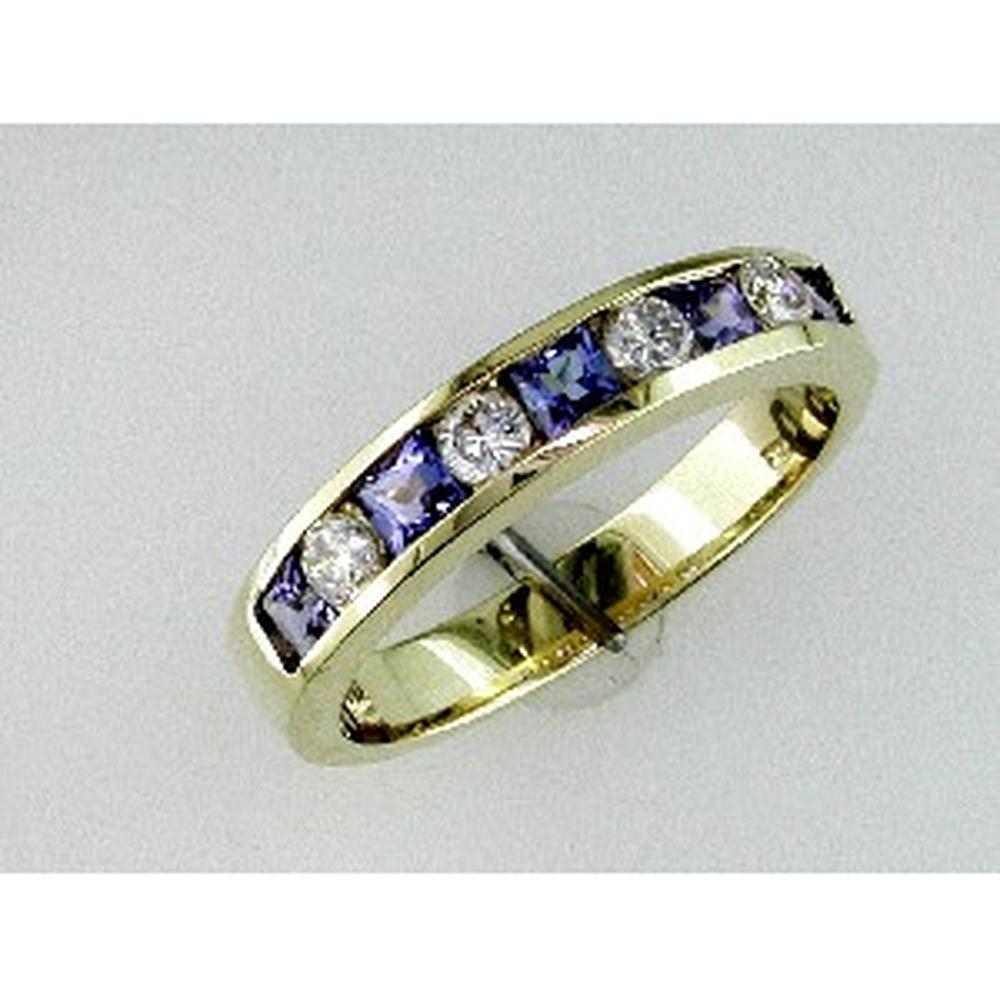 Royal 14K Yellow Gold Tanzanite and Diamond Band - 0.50 Carat Tanzanite, Round Diamonds