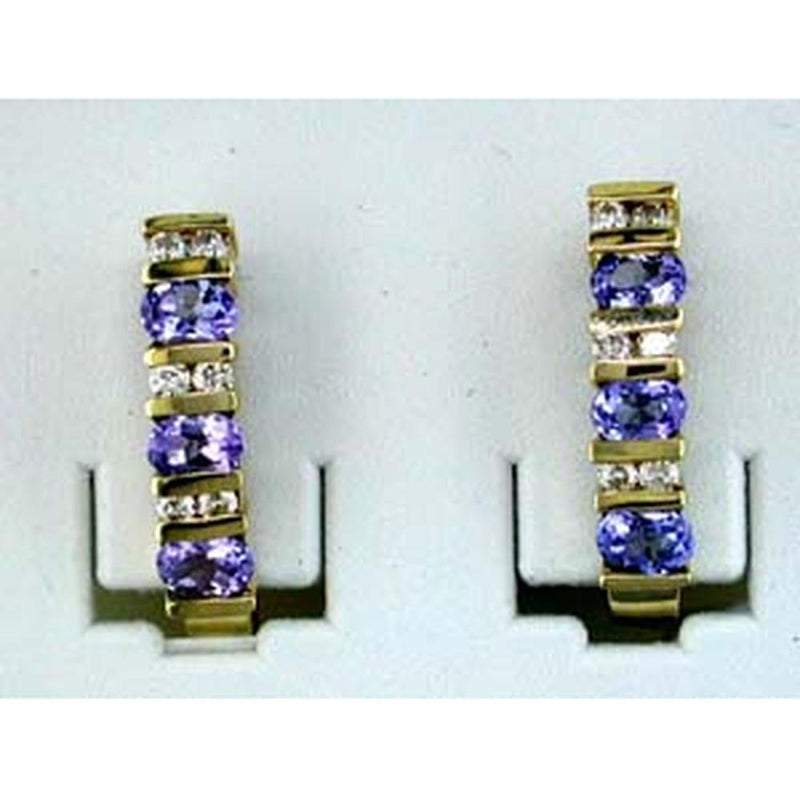 Royal 14K Yellow Gold Tanzanite & Diamond Hoop Earrings - 1.12 Carat Tanzanite, 0.28 Carat Diamond Total