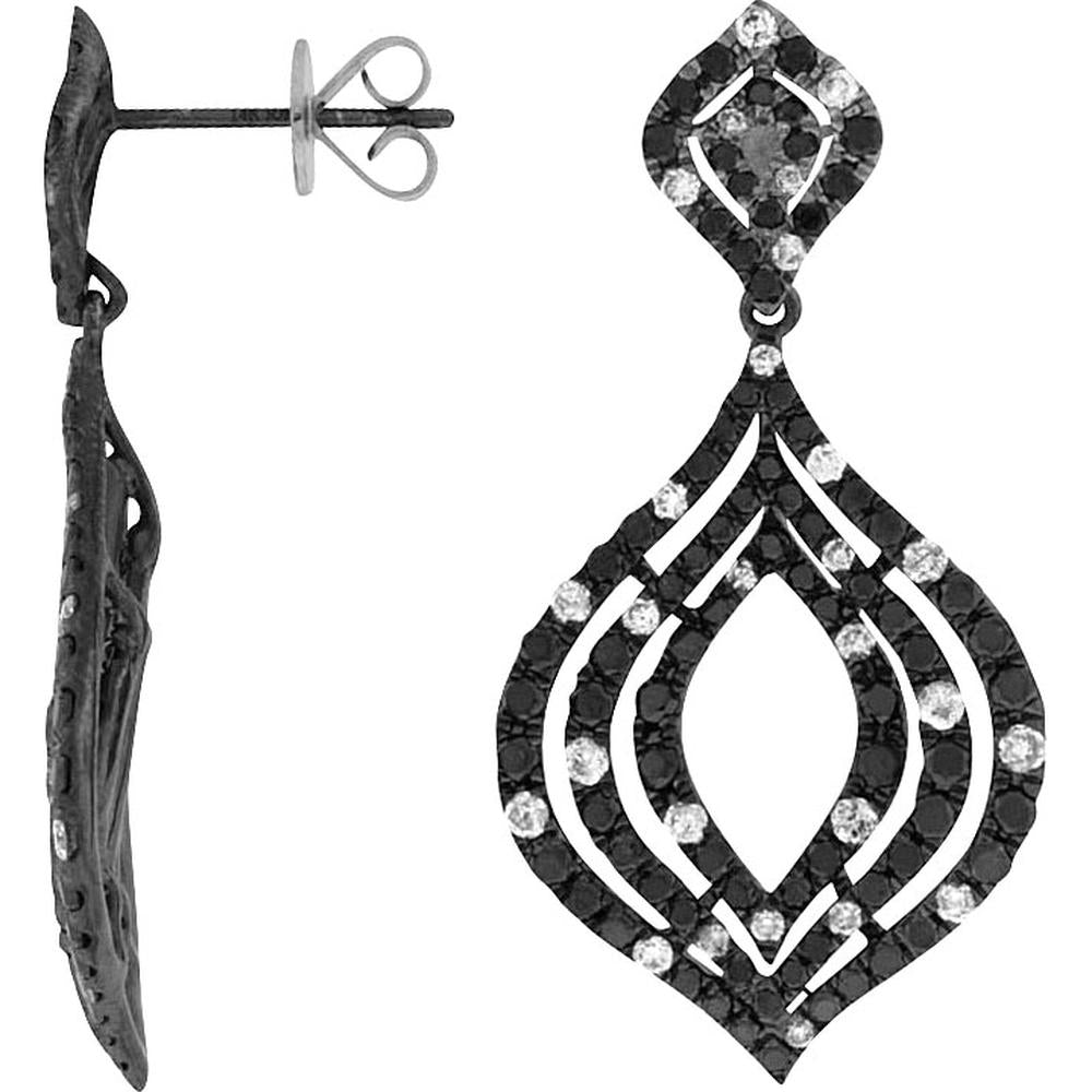 Royal Elegant 14K White Gold Halo Diamond & Black Diamond Earrings - 2.10 Carat Total Gem Weight