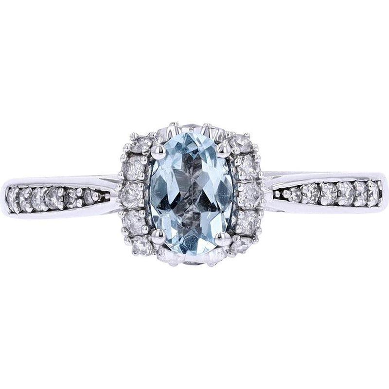 Serene 14K Aquamarine and Diamond Oval Ring - 0.24 Carats Total Diamond Weight