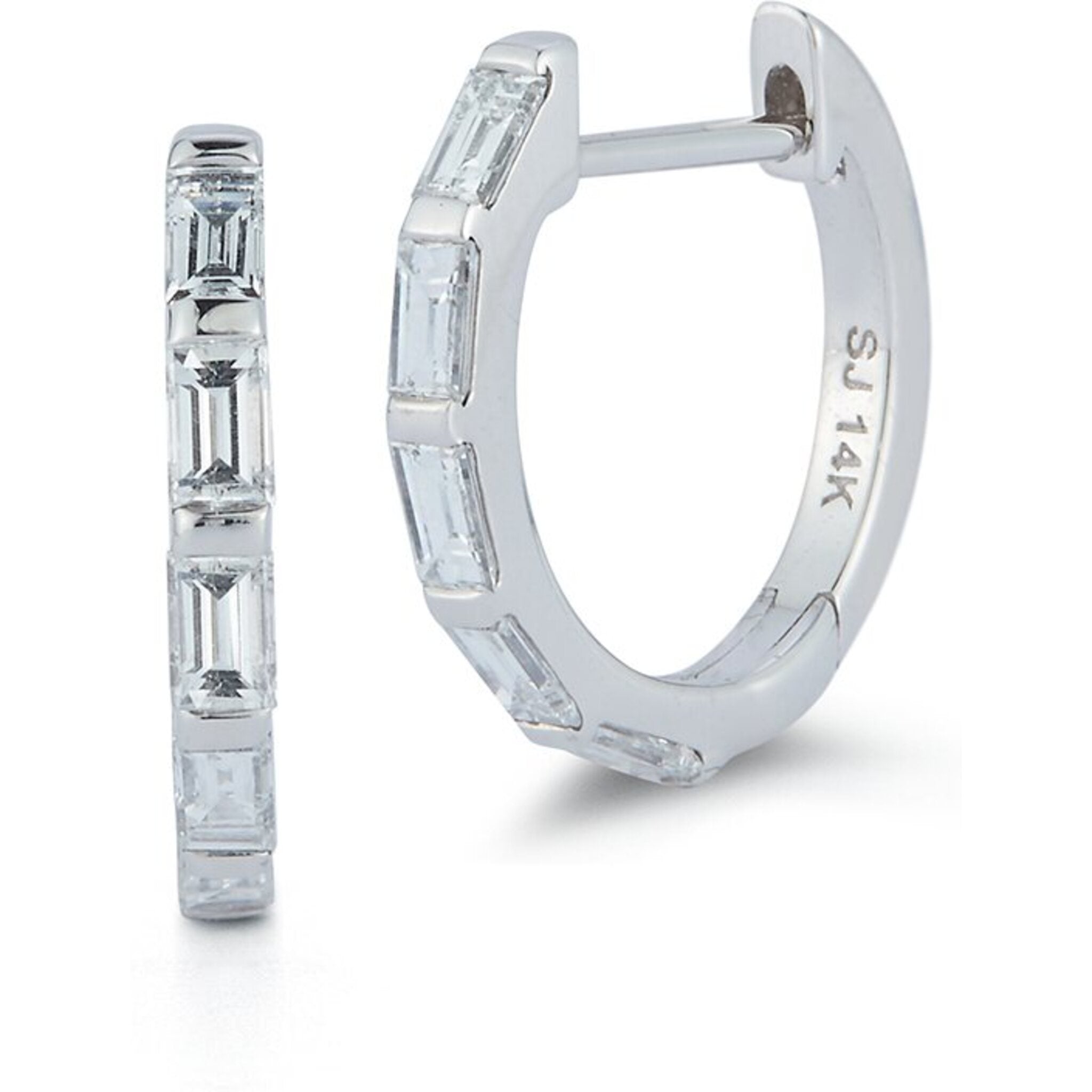 Elevate your style with Sofer Jewelry's Baguette Diamond Huggie Earrings in 14K White Gold.