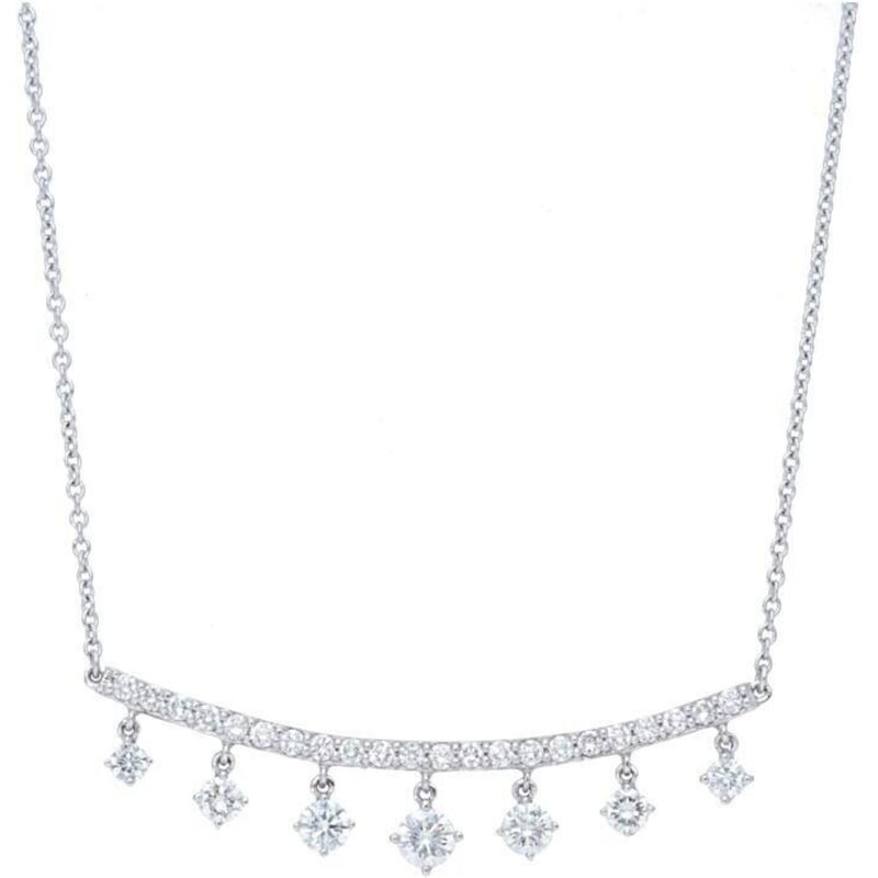 Sofer Jewelry - 14K White Gold Curved Diamond Bar With Dangles Necklace with 0.96 Carats of Diamonds