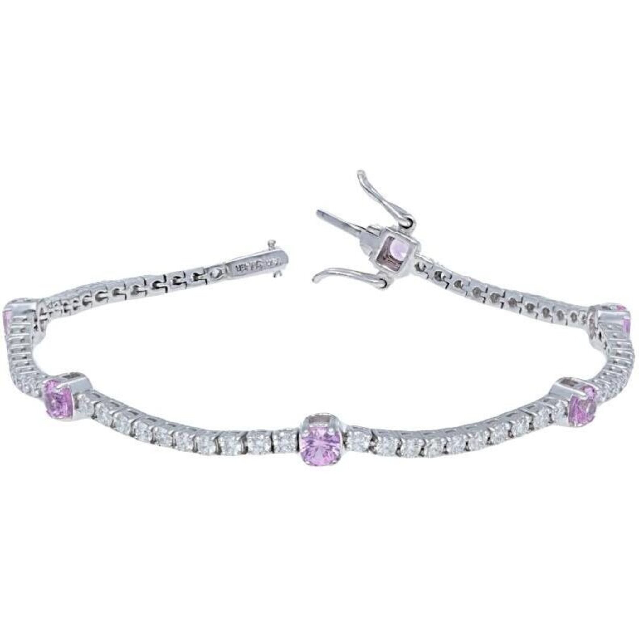 Sofer Jewelry - 14K White Gold Diamond and Pink Sapphire Tennis Bracelet with 2.95 Carats of Sapphires
