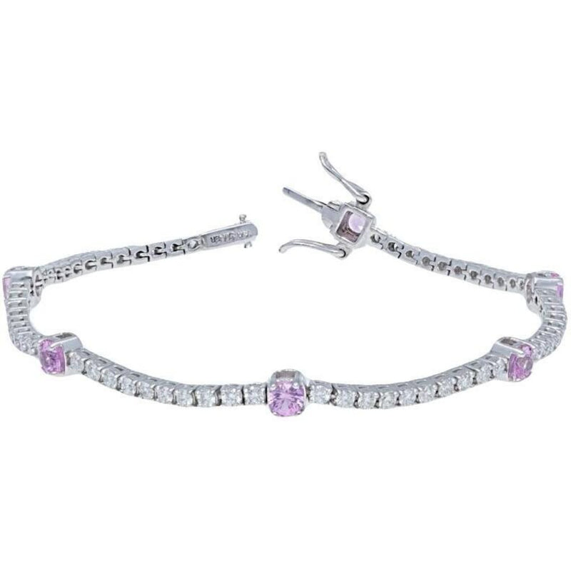 The focal point of this bracelet is the enchanting pink sapphires that alternate with the diamonds, adding a pop of color and a touch of romance to the design. The combination of the sparkling diamonds and the blush pink sapphires creates a harmonious contrast that is both sophisticated and charming.