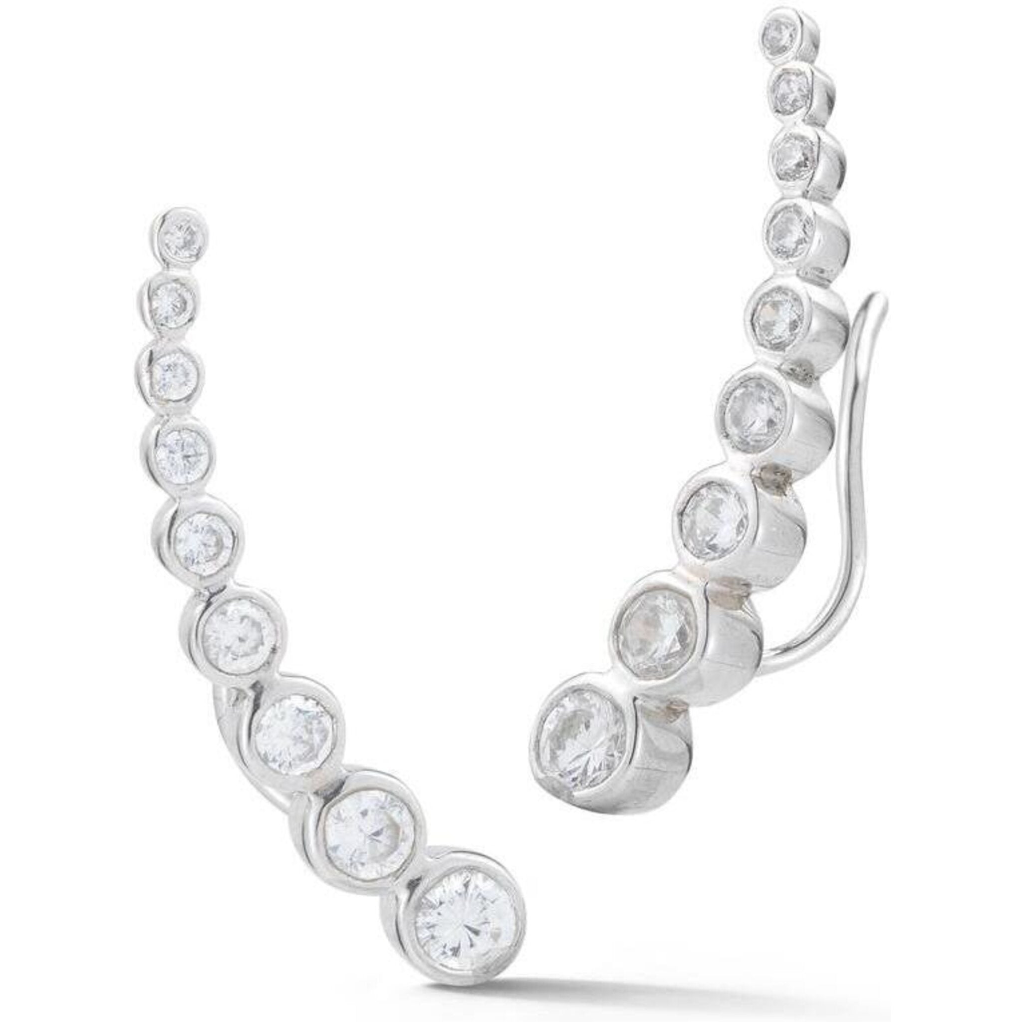 Sofer Jewelry - 14K White Gold Graduating Diamond Ear Climber Earrings with 0.89 Carats of Diamonds