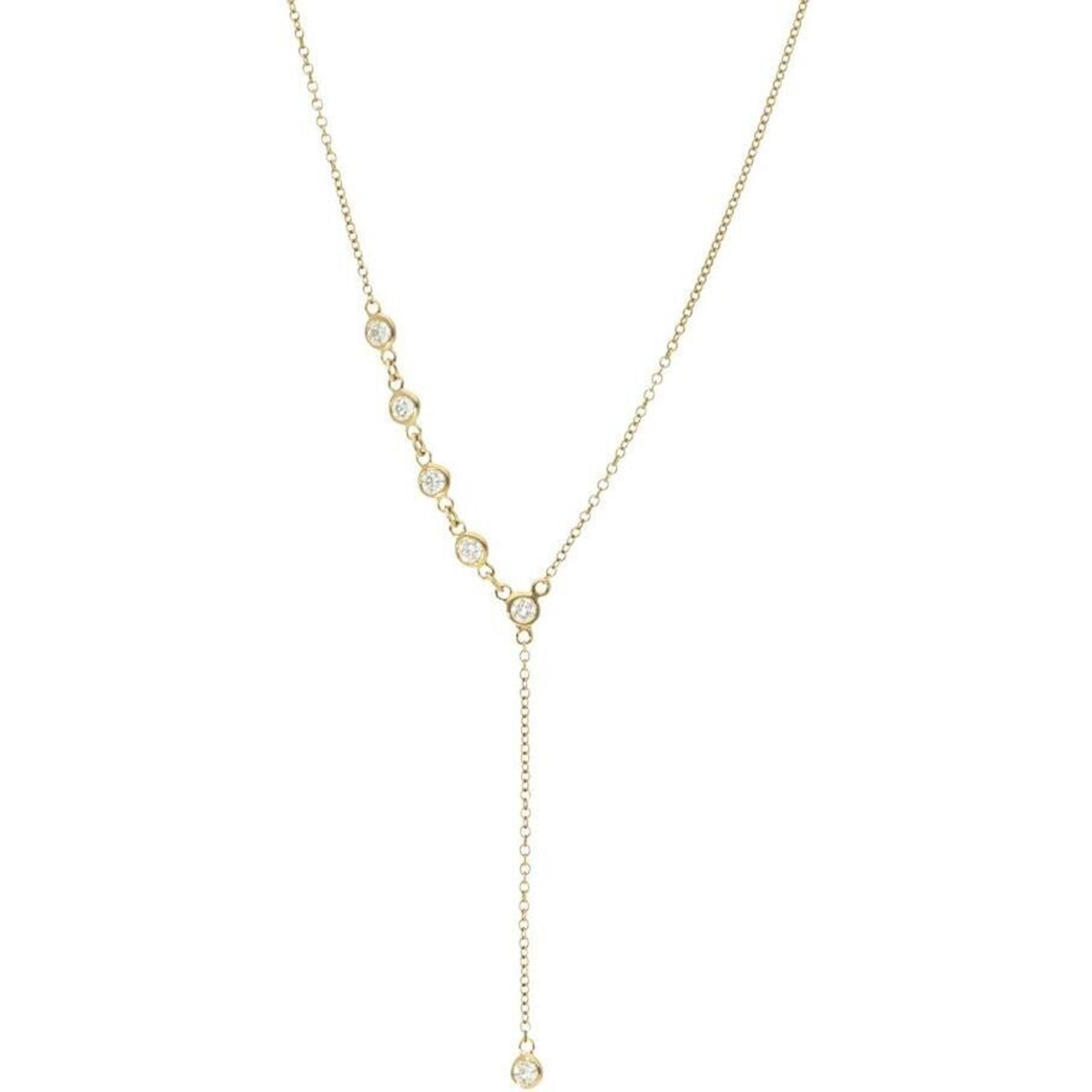Sofer Jewelry - 14K Yellow Gold Half Plain Bezel Diamonds By The Yard Drop Necklace with 0.3 Carats of Diamonds