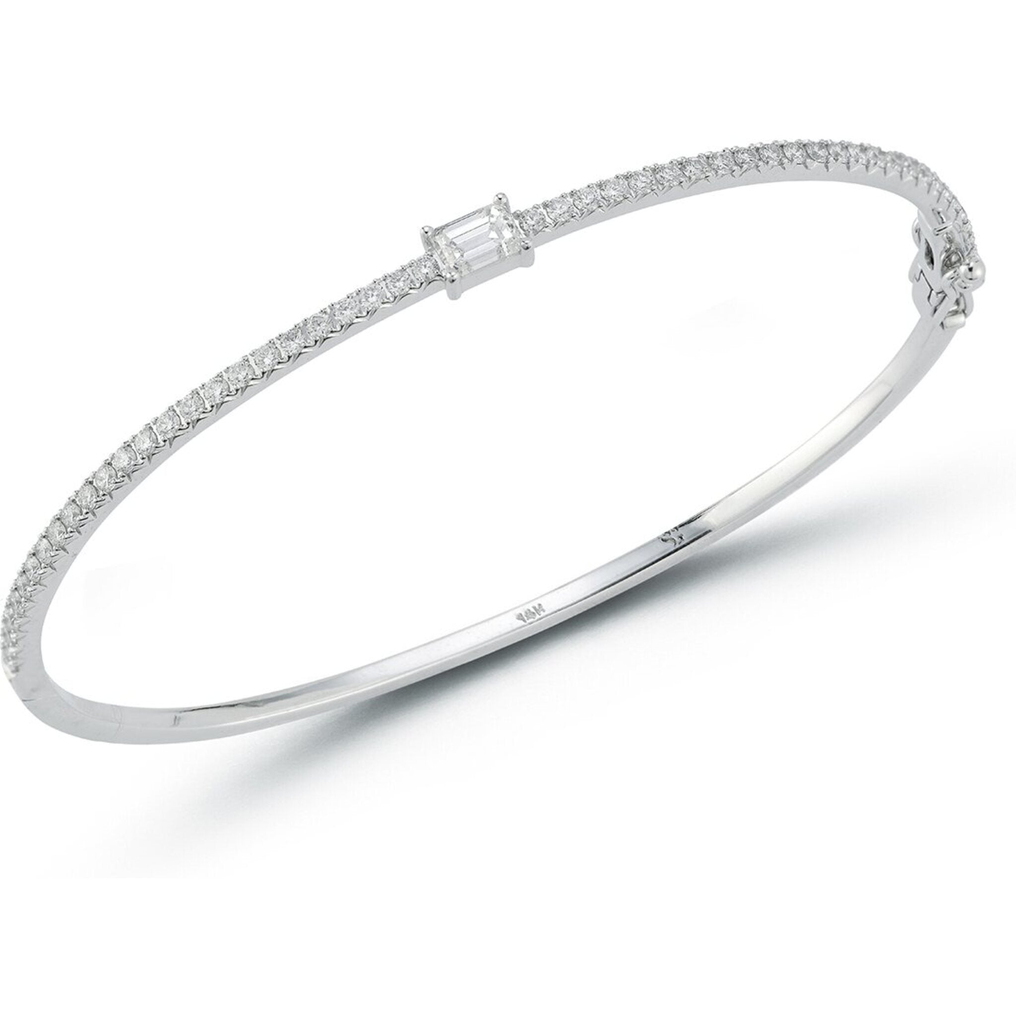 Indulge in the sheer elegance of the Halfway Around Pave Bangle with Emerald Diamond Accent in 14K White Gold. This exquisite piece is more than just jewelry; it's a statement of your impeccable taste and sophistication. Crafted in lustrous 14K White Gold, this bangle exudes luxury from every angle.