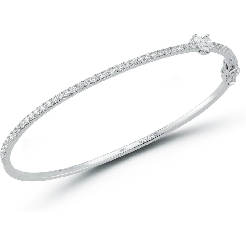 Sofer Jewelry - 14K White Gold Halfway Around Pave Bangle With Heart Diamond Accent with 0.99 Carats of Diamonds