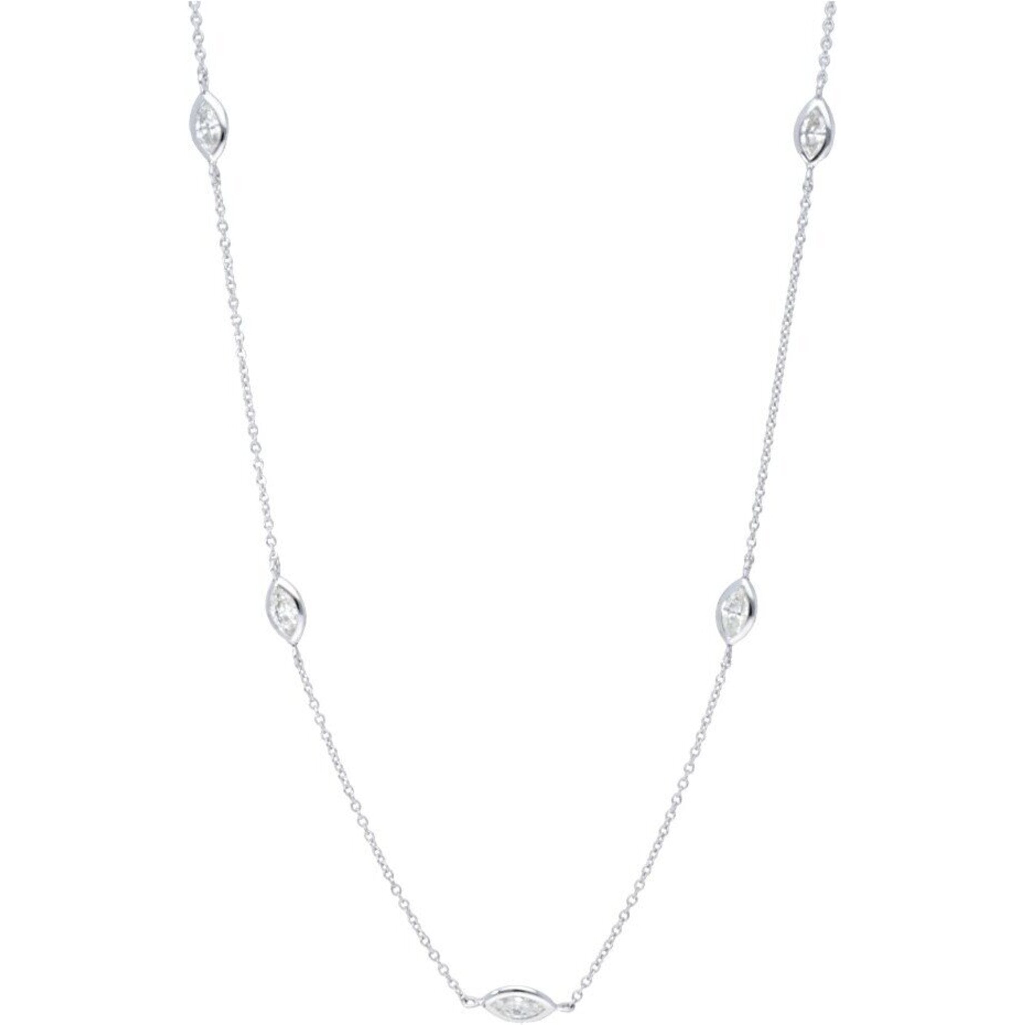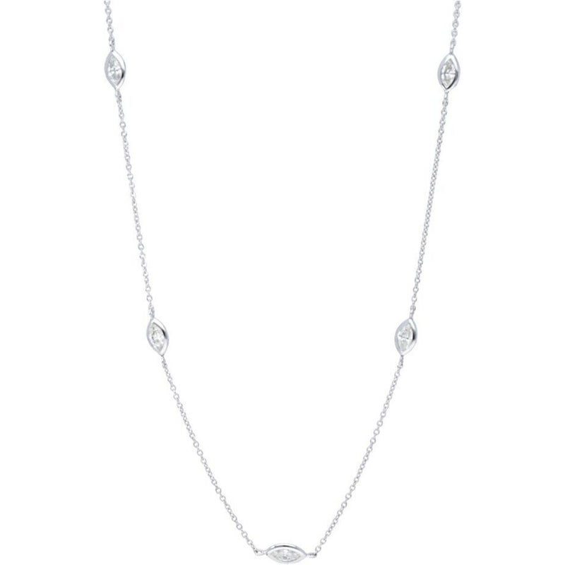 Sofer Jewelry - 14K White Gold Hanging Marquise Bezel Diamond Necklace with 0.75 Carats of Diamonds