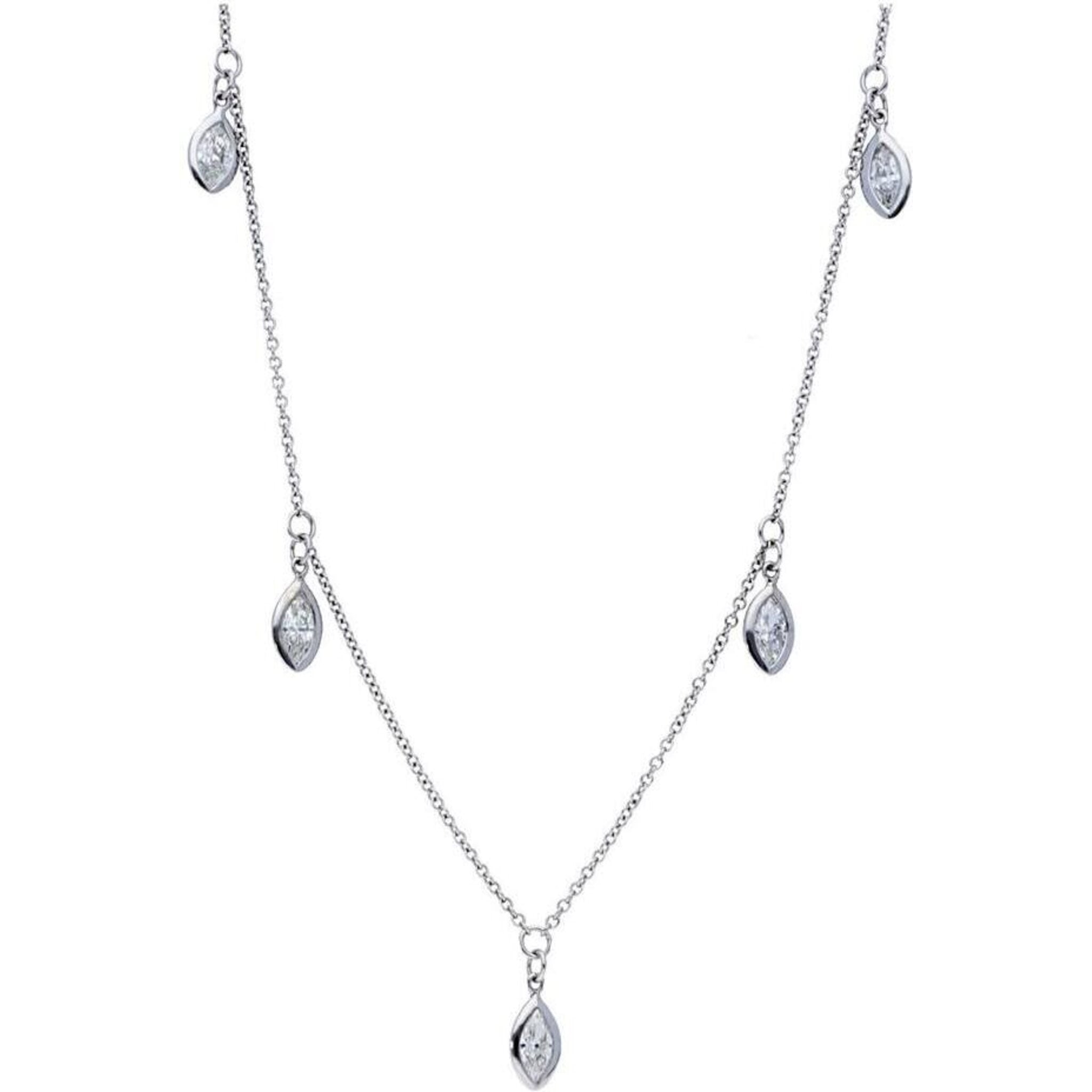 Sofer Jewelry - 14K White Gold Hanging Marquise Bezel Diamond Necklace with 1.18 Carats of Diamonds