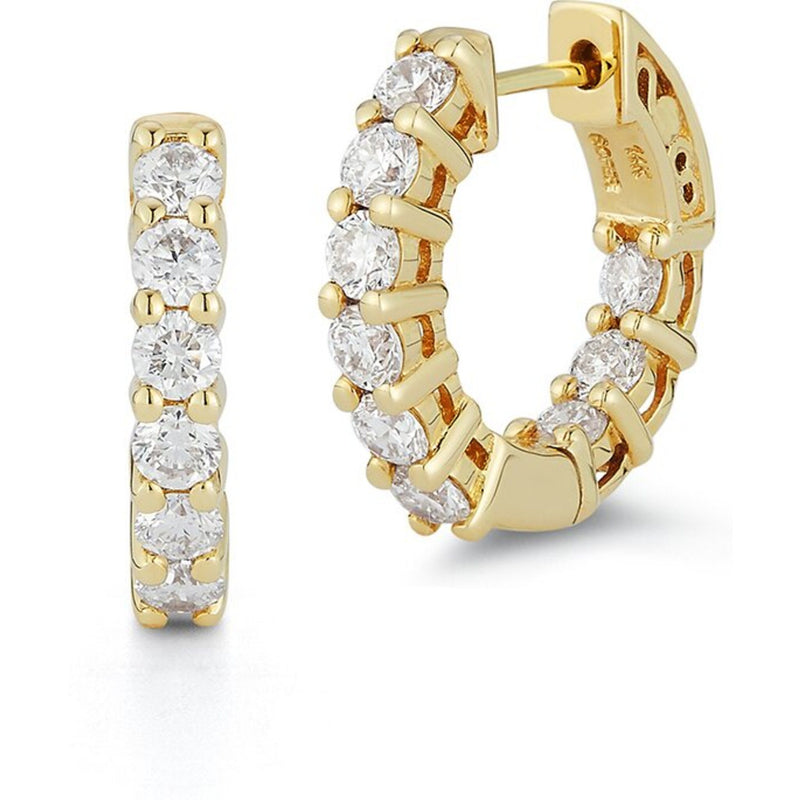 Sofer Jewelry - 14K Yellow Gold Inner and Outer Shared Prong Diamond Hoop Earrings, 0.50 Inches with 1.5 Carats of Diamonds