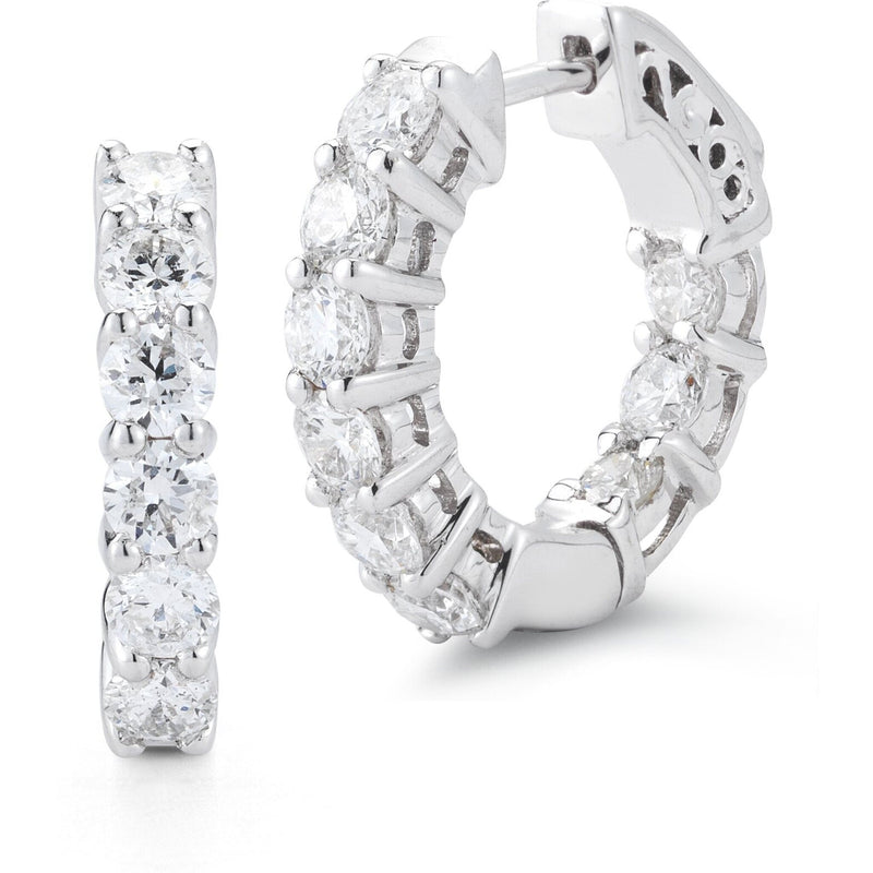 Sofer Jewelry - 14K Rose Gold Inner and Outer Shared Prong Diamond Hoop Earrings with 1.5 Carats of Diamonds