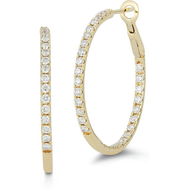 Sofer Jewelry - 14K Yellow Gold Inside and Outside Diamond Hoop Earrings, 1.00 Inches with 1.05 Carats of Diamonds