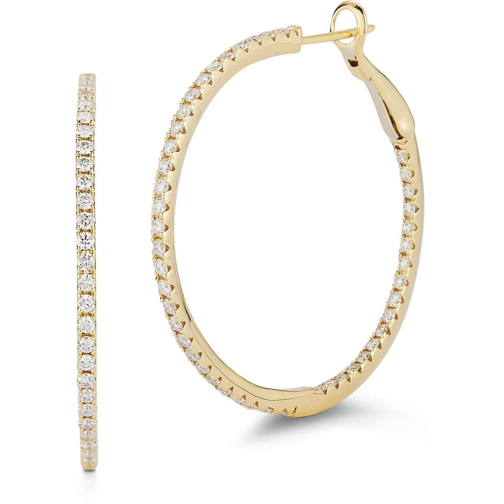 Sofer Jewelry - 14K Yellow Gold Inside and Outside Diamond Hoop Earrings, 1.50 Inches with 1.53 Carats of Diamonds