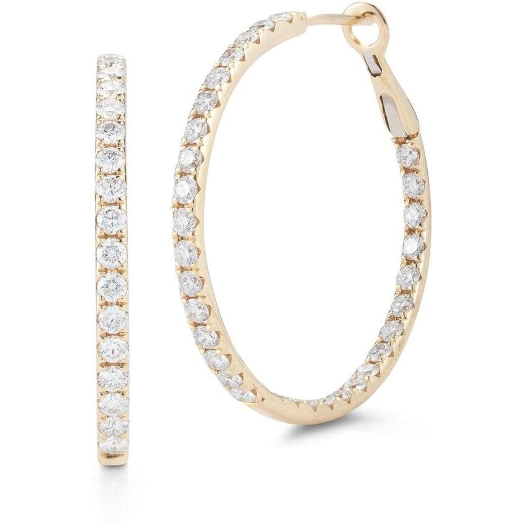Sofer Jewelry - 14K Yellow Gold Inside and Outside Diamond Hoop Earrings with 2 Carats of Diamonds