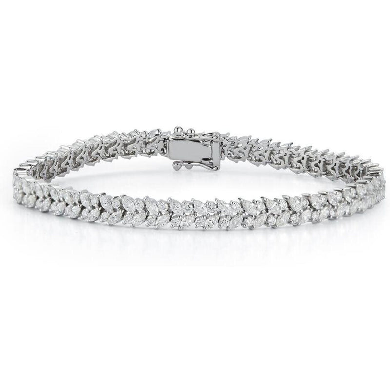 Sofer Jewelry - 14K White Gold Marquise and Round Diamond Chevron Bracelet with 4.69 Carats of Diamonds