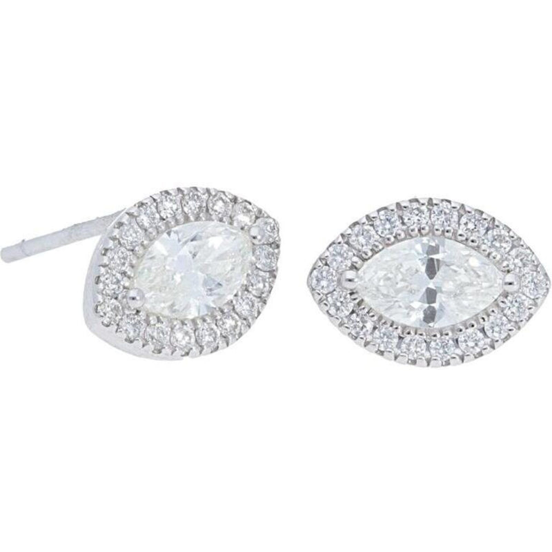Sofer Jewelry - 14K White Gold Marquise Diamond Halo Stud Earrings with 0.53 Carats of Diamonds
