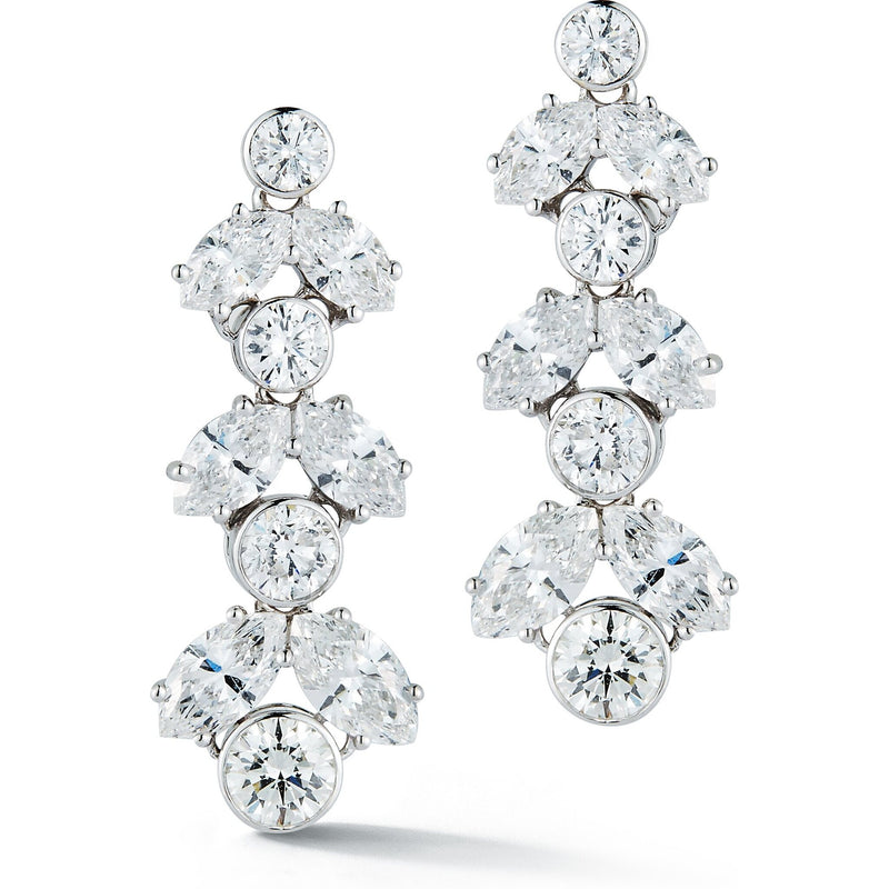 Sofer Jewelry - 14K White Gold Marquise/Round Diamond Drop Earrings with 3.54 Carats of Diamonds