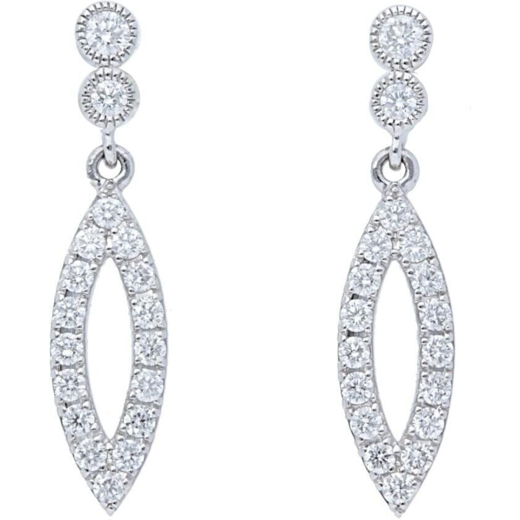 Experience the allure of marquise-shaped diamonds that gracefully dangle from your ears, catching the light with every movement. The 14K White Gold setting enhances the brilliance of these diamonds, creating a captivating play of light and shadow.