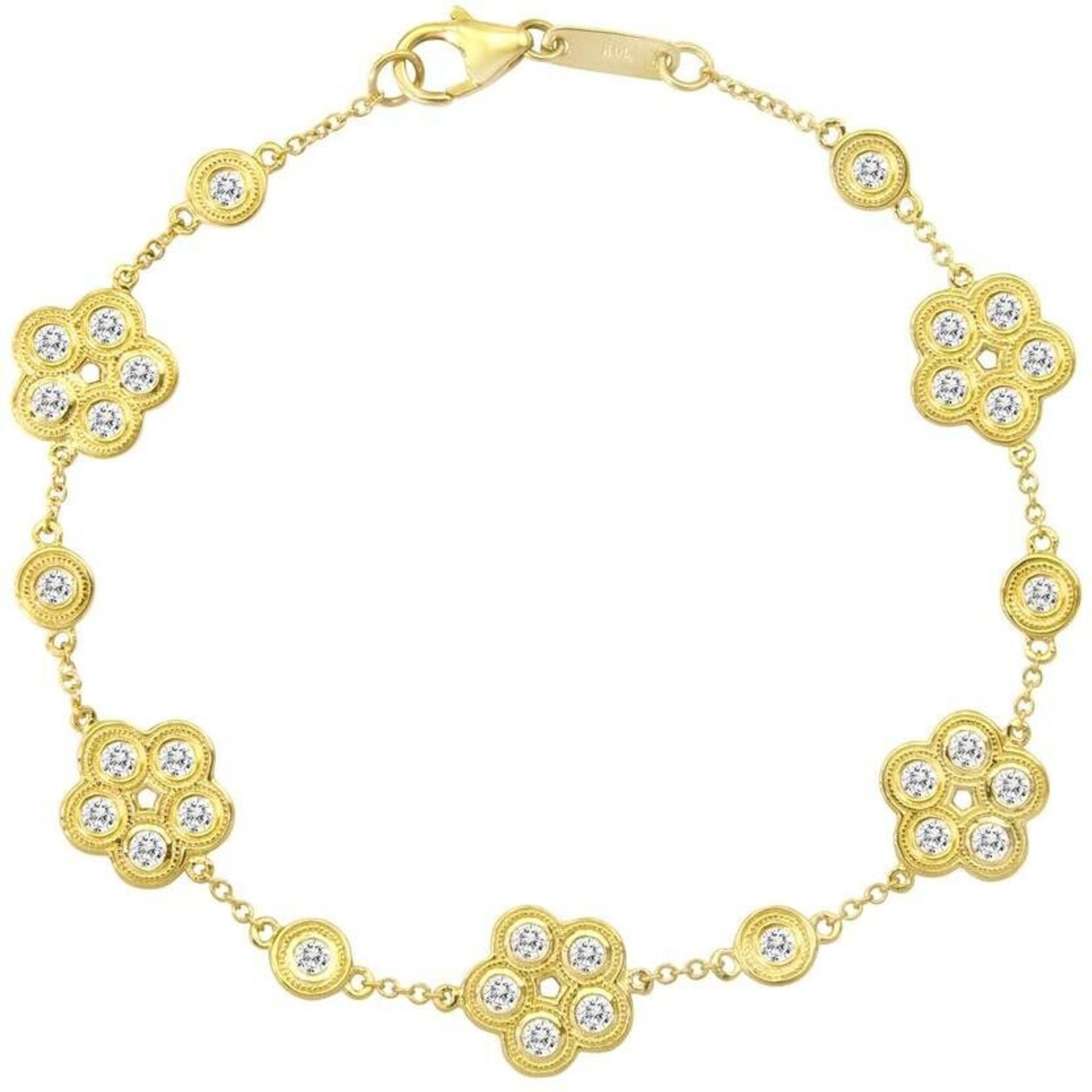 Sofer Jewelry - 14K Yellow Gold Milgrain Bezel Diamond Cluster and Bezel Bracelet with 1.09 Carats of Diamonds
