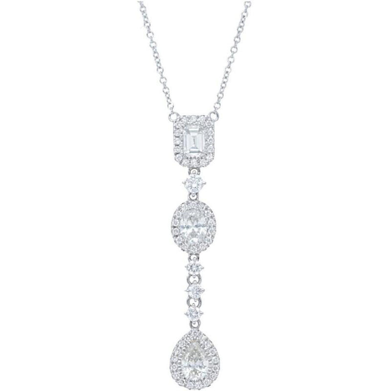 Sofer Jewelry - 18K White Gold Mixed Diamond With Halo Drop Necklace with 1.46 Carats of Diamonds
