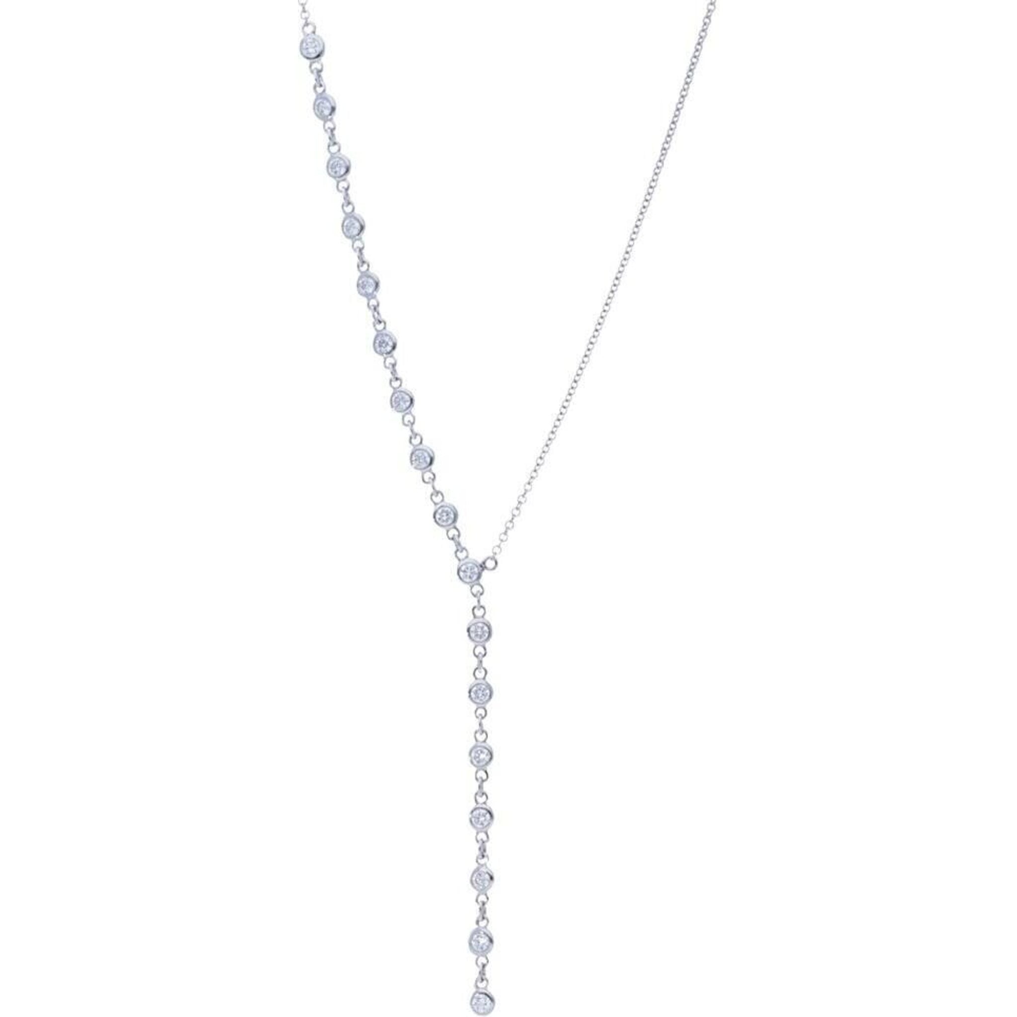 Sofer Jewelry - 14K White Gold Modern One Side Bezel Diamonds By The Yard Drop Necklace with 0.68 Carats of Diamonds