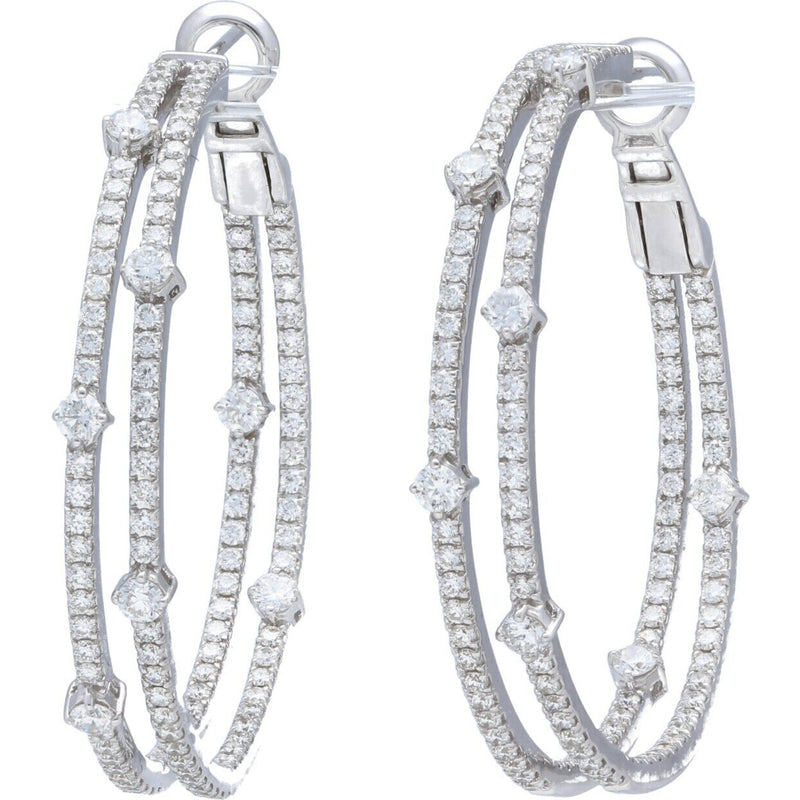 Sofer Jewelry - 14K White Gold Multi Size Diamond Hoop Earrings with 3.05 Carats of Diamonds