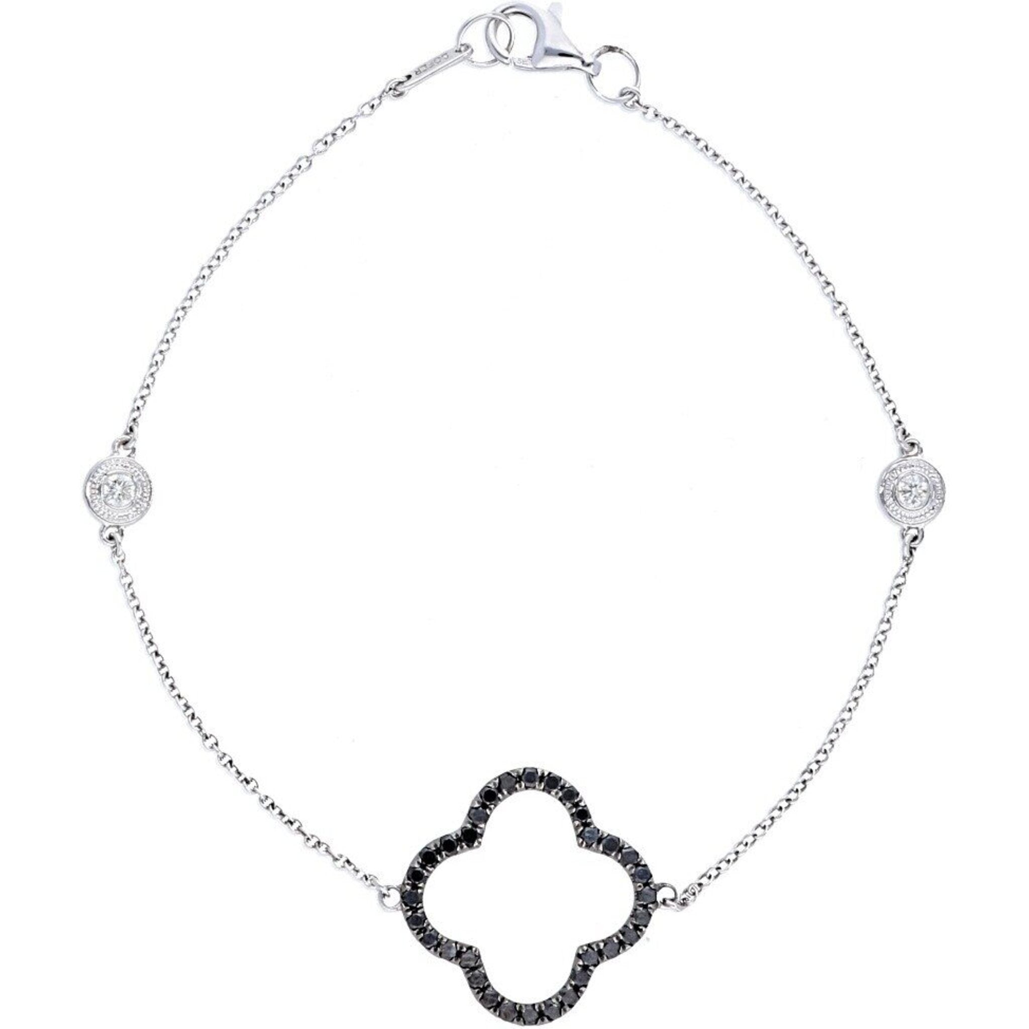 Sofer Jewelry - 14K White Gold Open Black Diamond Clover With 2 Milgrain Bezel Diamonds Bracelet with 0.41 Carats of Diamonds