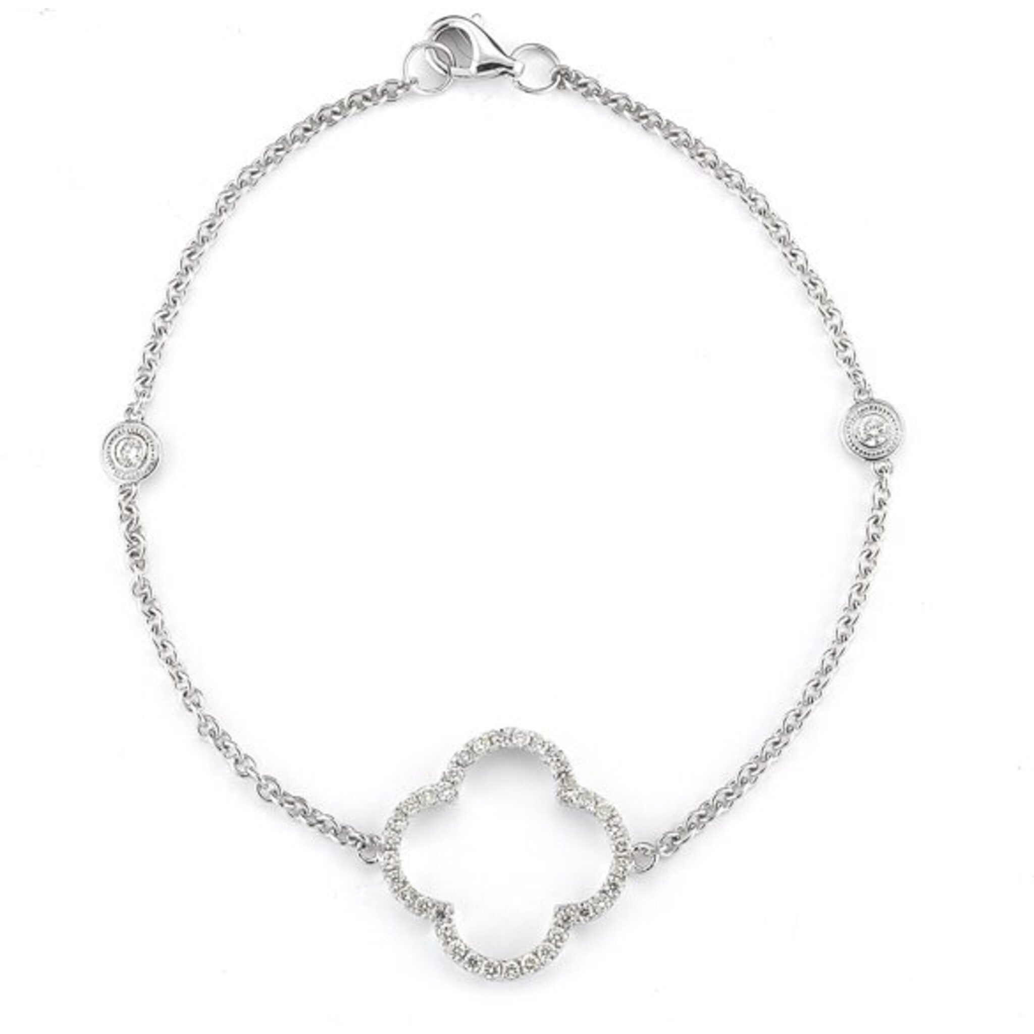 Sofer Jewelry - 18K White Gold Open Diamond Clover With 2 Milgrain Bezel Diamond Bracelet with 0.41 Carats of Diamonds