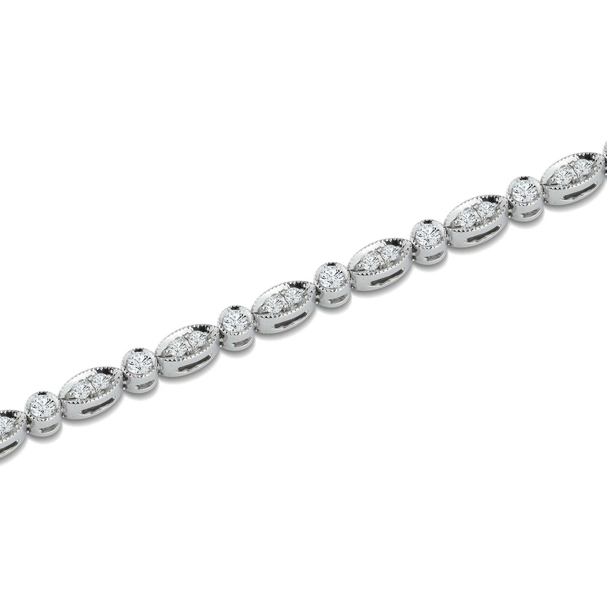 Sofer Jewelry - 14K White Gold Oval and Round Shape Diamond Bracelet with 0.91 Carats of Diamonds