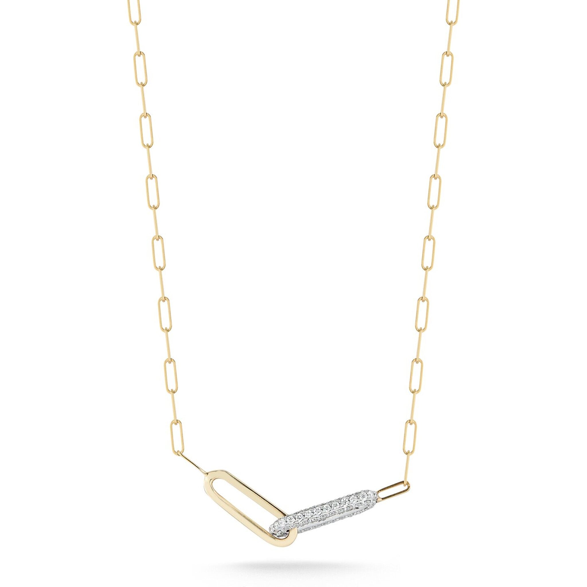 Sofer Jewelry - 14K Two Tone Paperclip Chain With A Diamond and Polished Link with 0.24 Carats of Diamonds