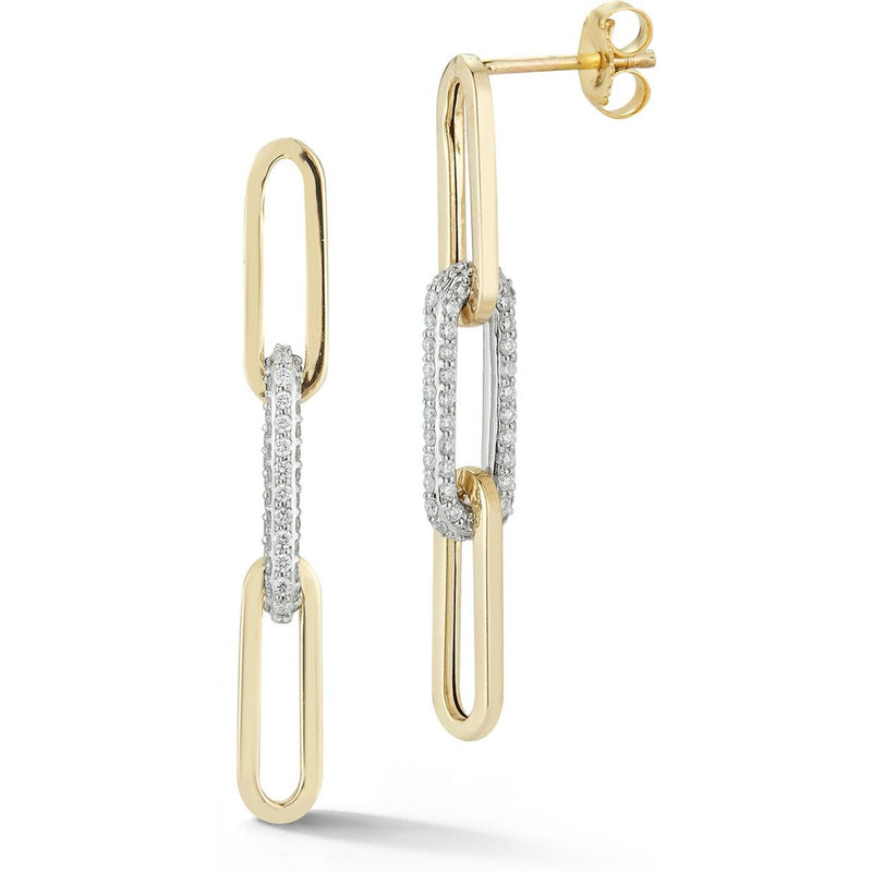 Sofer Jewelry - 14K Two Tone Paperclip Drop Stud Earrings With One Diamond Link with 0.48 Carats of Diamonds