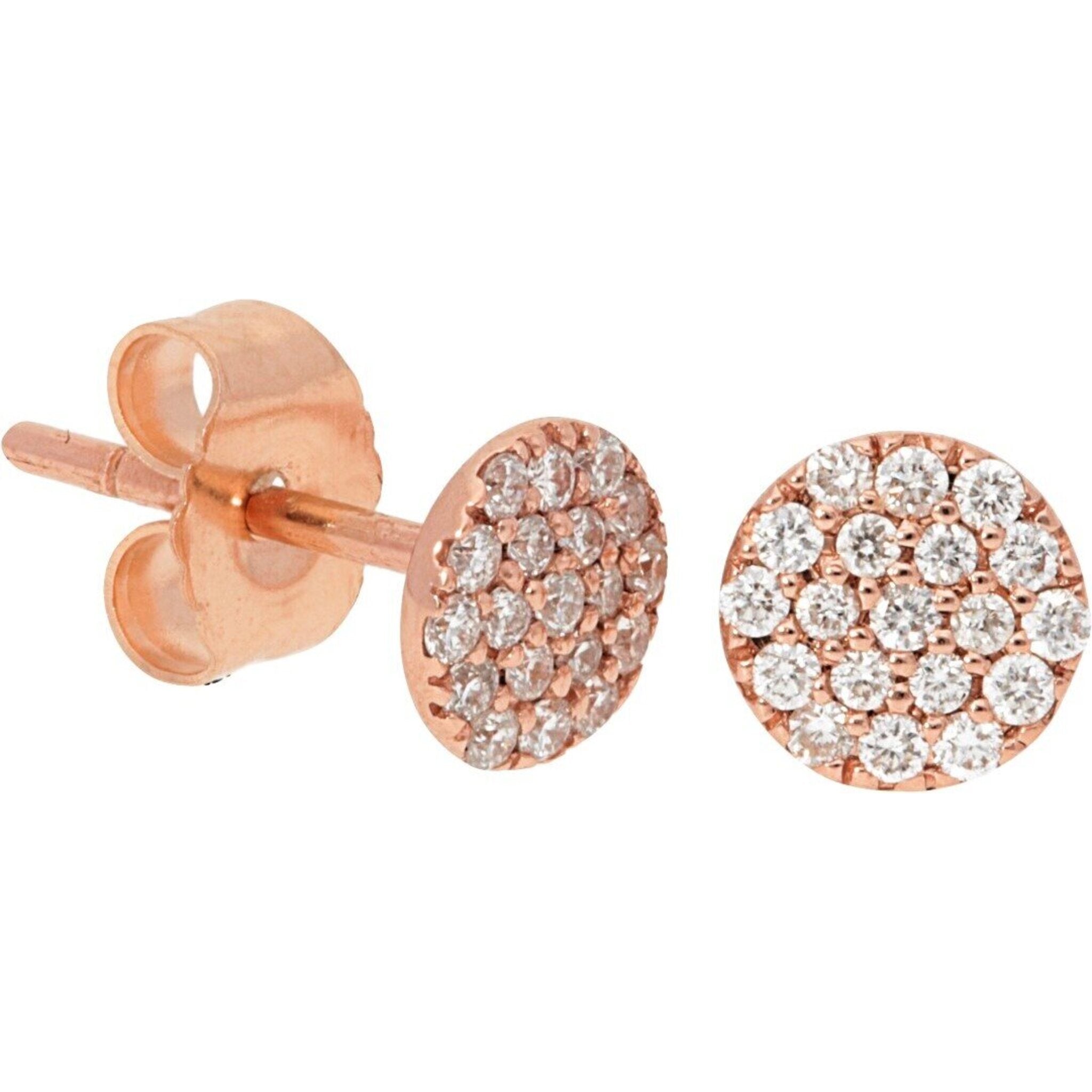 Sofer Jewelry - 14K Rose Gold Pave Diamond Circle Stud Earrings with 0.17 Carats of Diamonds