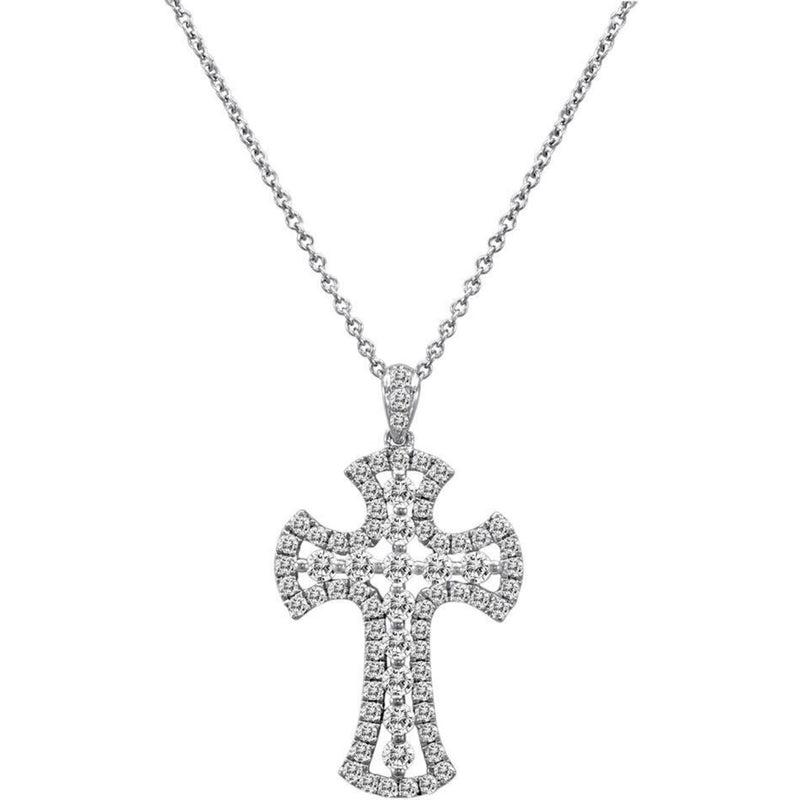 Sofer Jewelry - 14K White Gold Pave Diamond Gothic Cross Pendant with 0.86 Carats of Diamonds