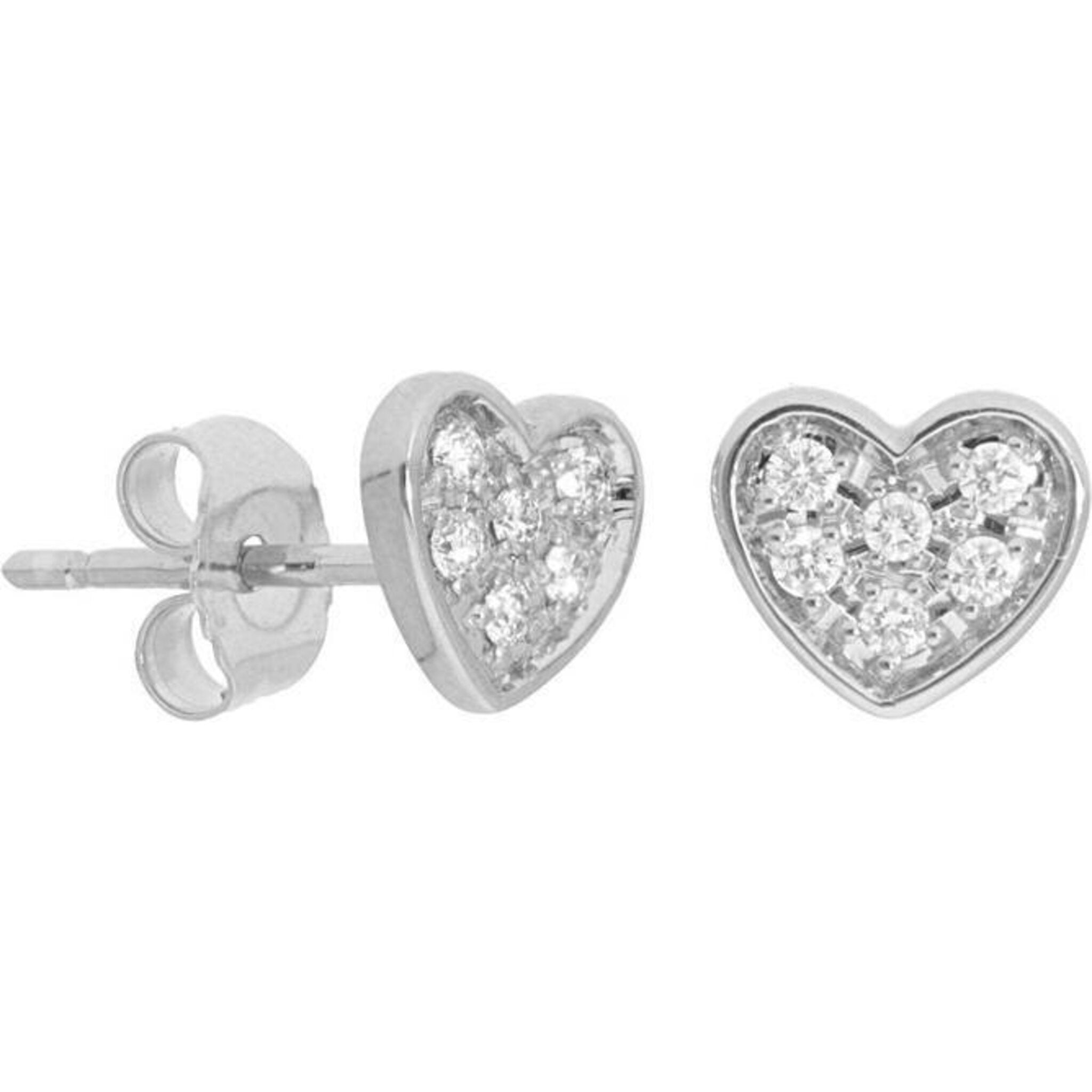 Sofer Jewelry - 14K White Gold Pave Diamond Heart Stud Earrings with 0.12 Carats of Diamonds
