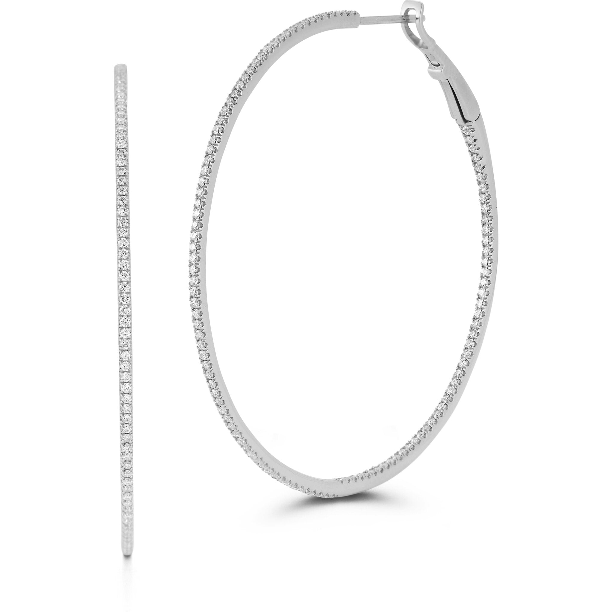 Sofer Jewelry - 14K White Gold Pave Diamond Hoop Earrings, 1.75in with 2.2 Carats of Diamonds