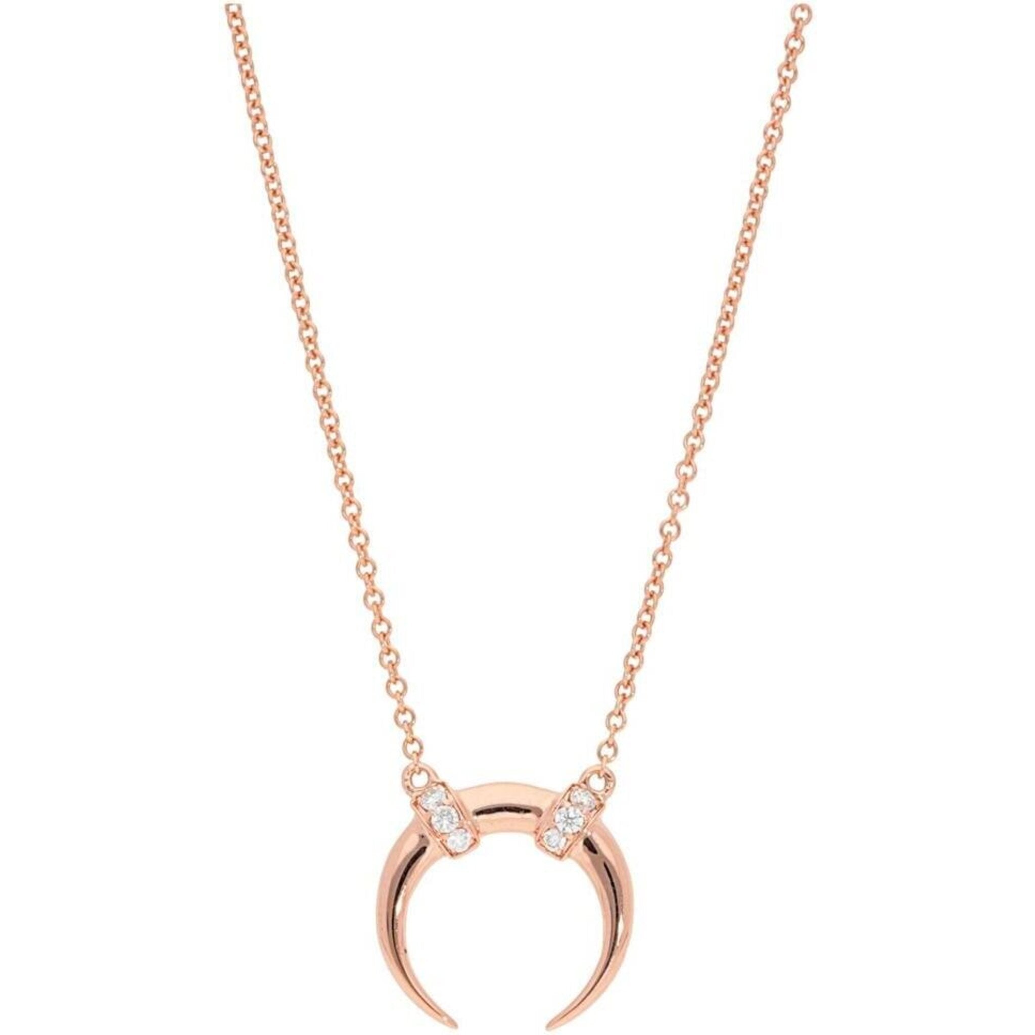 The delicate horn shape, bathed in the warm embrace of 14K Rose Gold, exudes an air of sophistication that is truly captivating. Adorned with a symphony of round diamonds, totaling 0.07 carats, this pendant glistens with brilliance, capturing the essence of elegance in every facet.