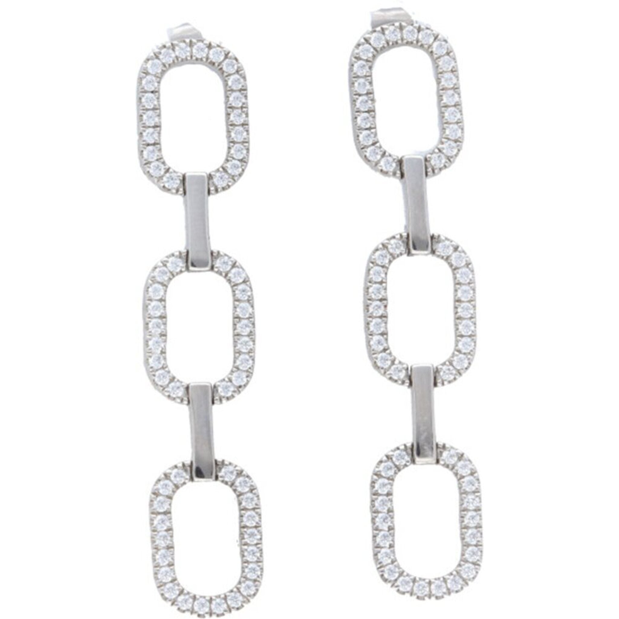 Sofer Jewelry - 14K White Gold Pave Diamond Link Drop Earrings with 0.7 Carats of Diamonds
