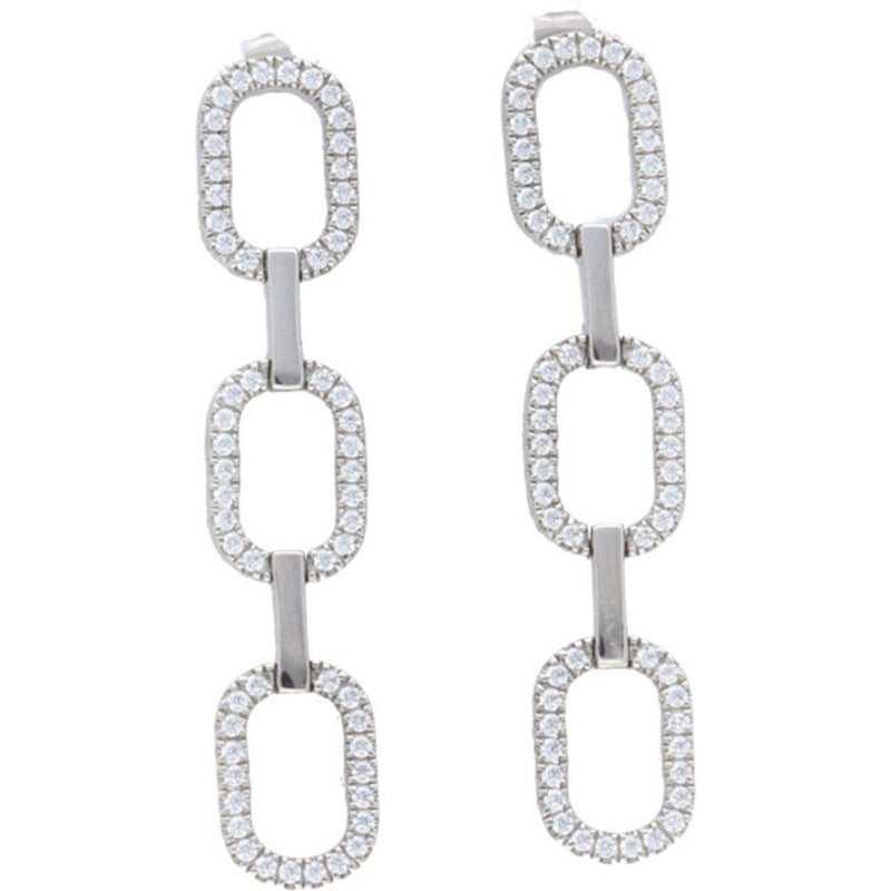 Lose yourself in the elegance of the mesmerizing beauty of our Pave Diamond Link Drop Earrings in 14K White Gold. Crafted to perfection, these earrings are a fusion of art and elegance, designed to elevate your style and make a statement that's impossible to ignore.