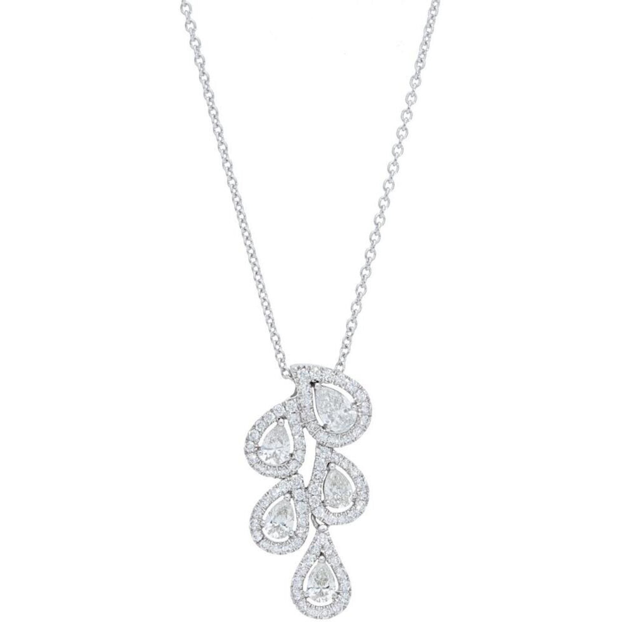Sofer Jewelry - 14K White Gold Pear Diamond Halo Cluster Pendant with 1.2 Carats of Diamonds
