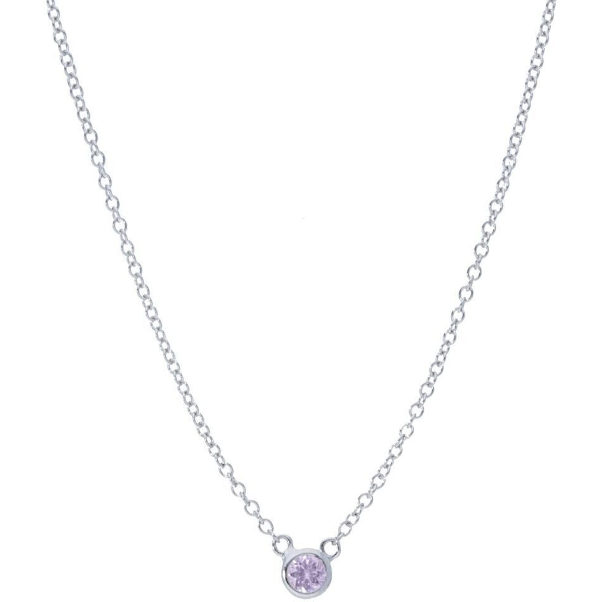 Sofer Jewelry - 14K White Gold Pink Sapphire Bezel Necklace with 0.11 Carats of Sapphires