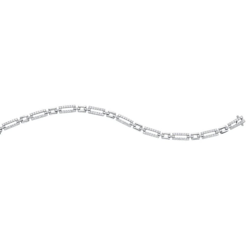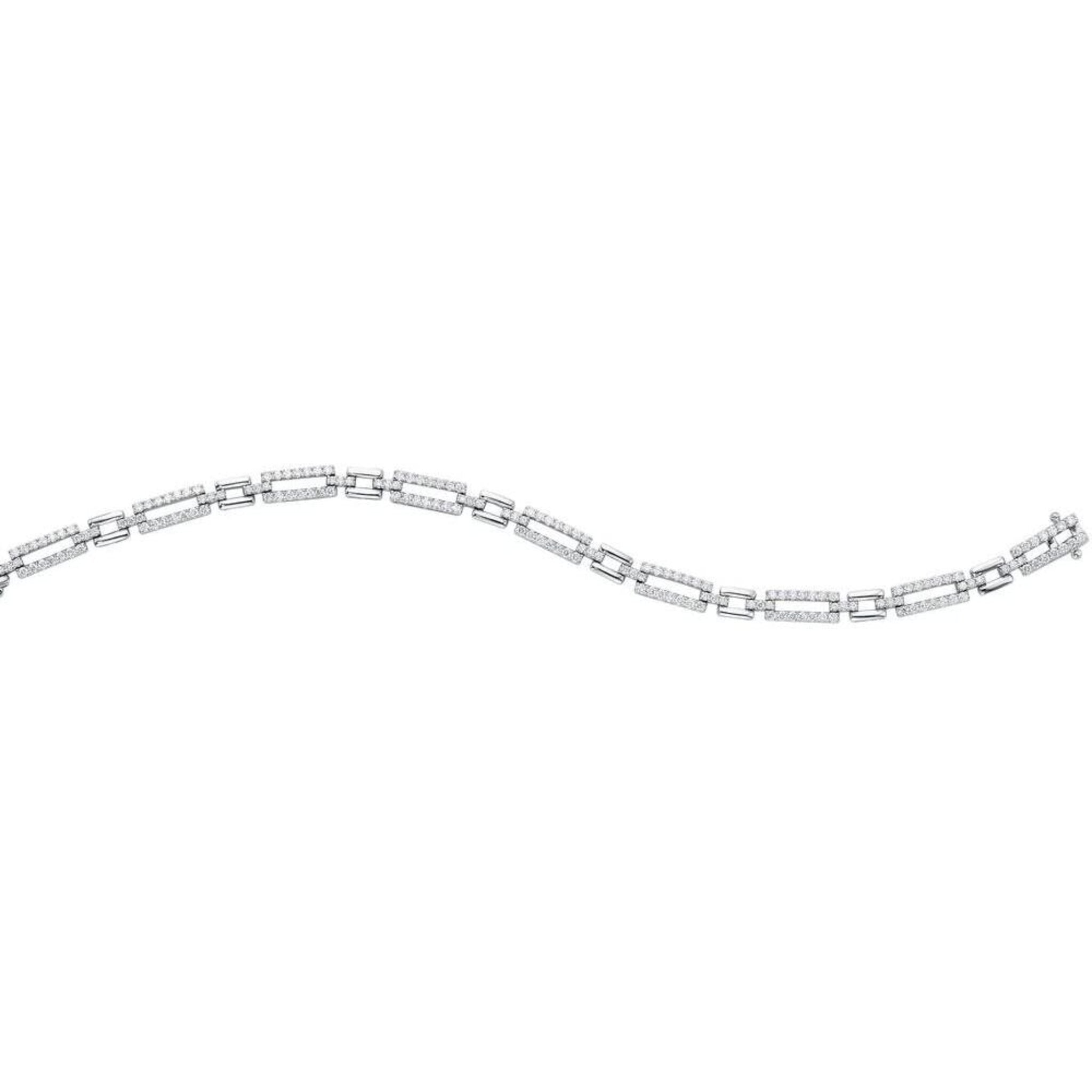 Sofer Jewelry - 14K White Gold Rectangle Link Pave Diamond Bracelet with 2.12 Carats of Diamonds