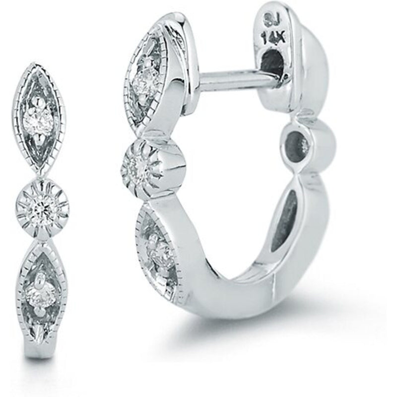 Sofer Jewelry - 14K White Gold Round and Oval Shape Diamond Huggie Earrings with 0.03 Carats of Diamonds